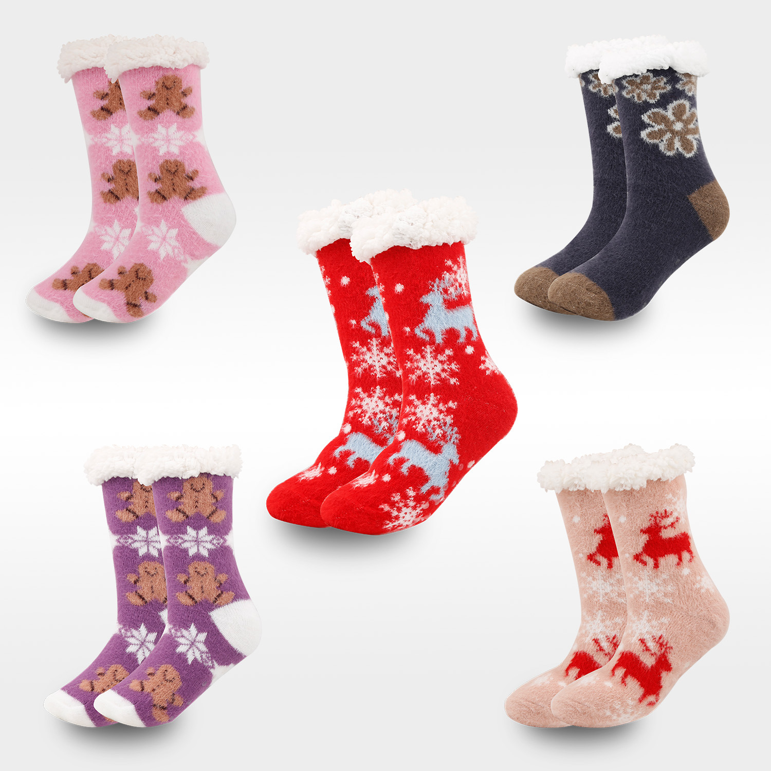 クリスマスの靴下の女性の秋冬の床板の靴下の雪の靴下の厚いベルベットの家庭の睡眠の靴下のじゅうたんの靴下の月子の靴下