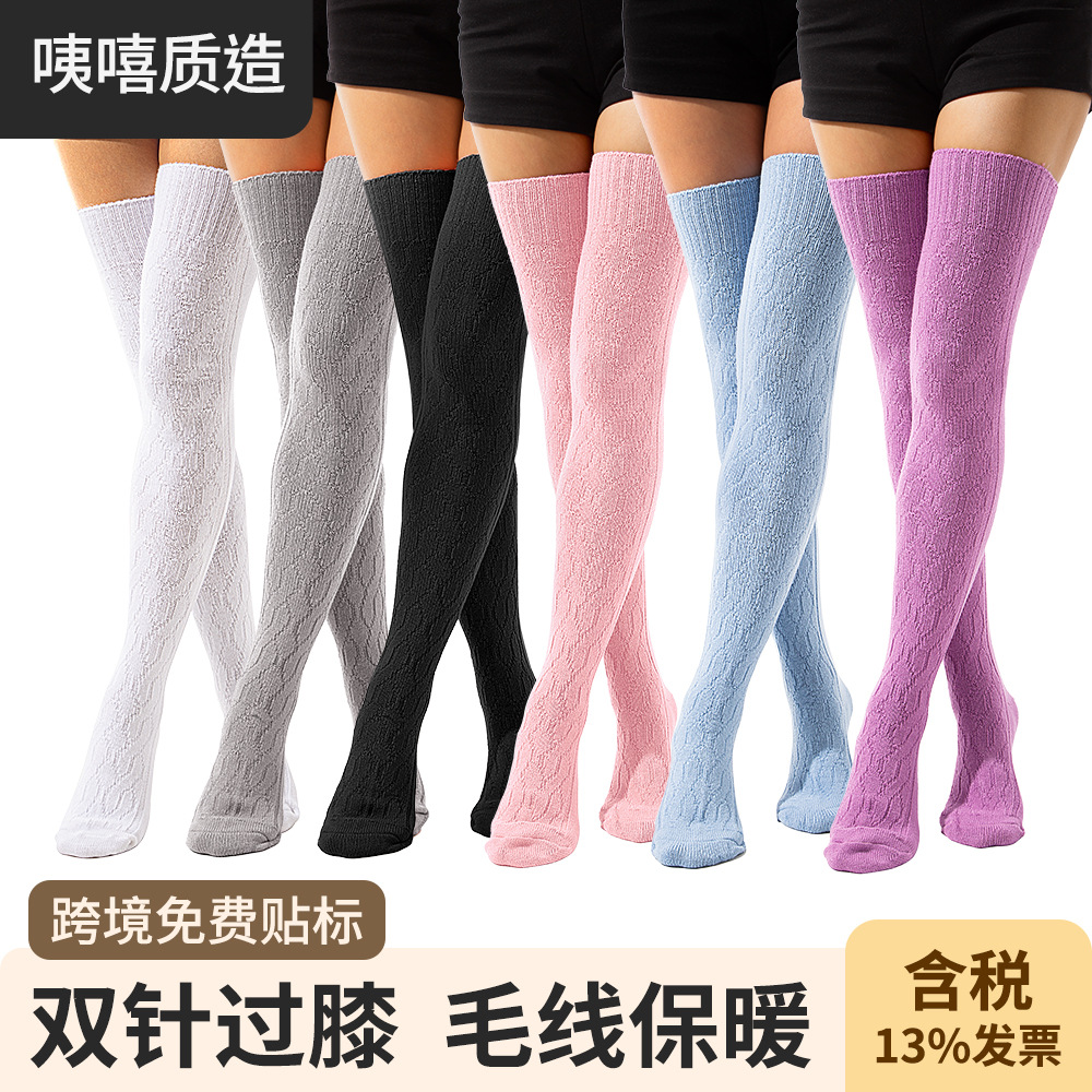 越境販売 太もも丈ソックス ハイソックス 秋冬 ロングソックス レディースソックス 綿ニット オーバーニーソックス メーカー卸売 ニット綿ソックス