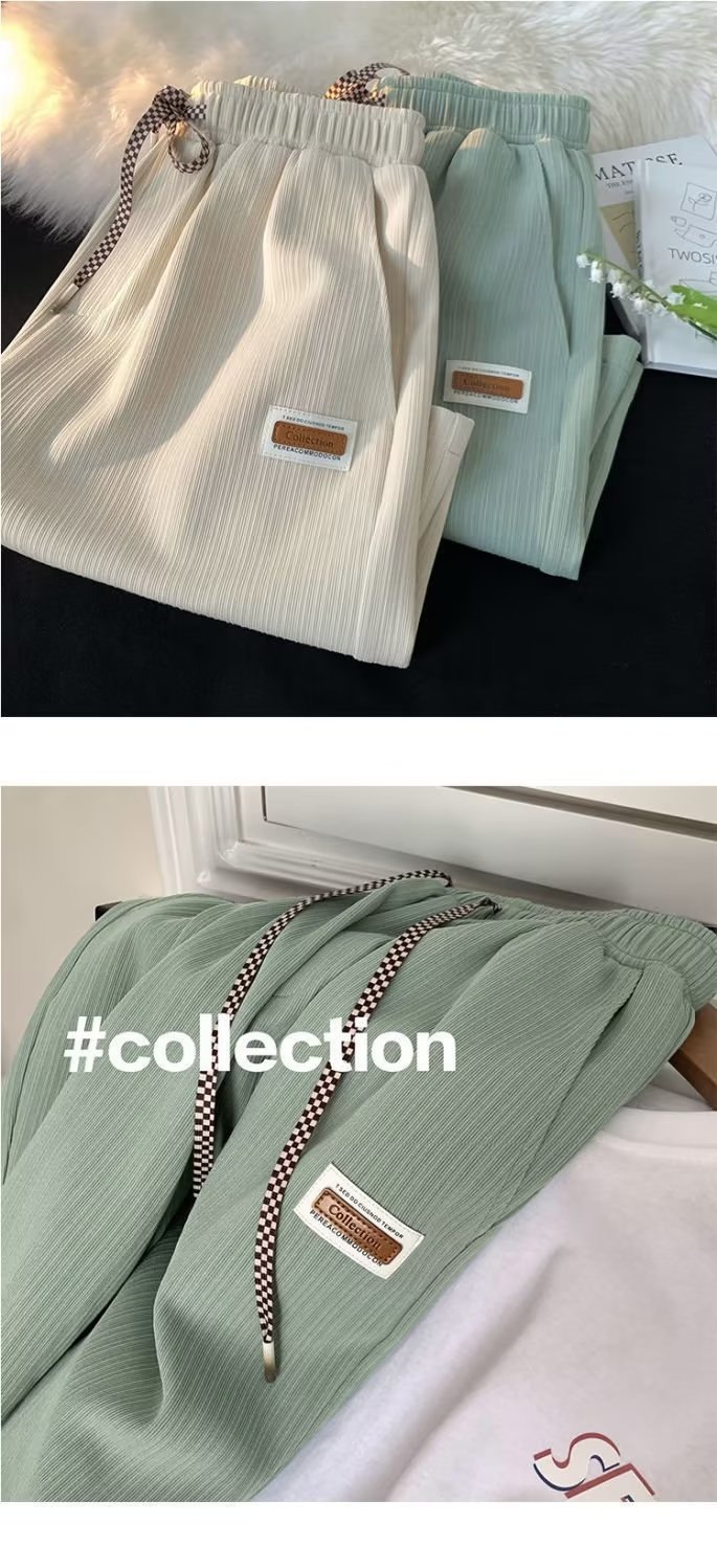 男女カップルは夏の薄い氷糸の高級感のあるワイドパンツを着て、ゆったりとしたカジュアルなズボンのストレートパンツをデザインします。
