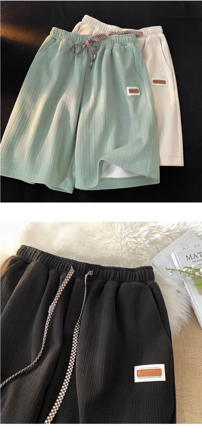 香港風夏氷糸カジュアルパンツ男性ゆるい純色五分ズボン潮涼感ズボン運動百合中ズボン