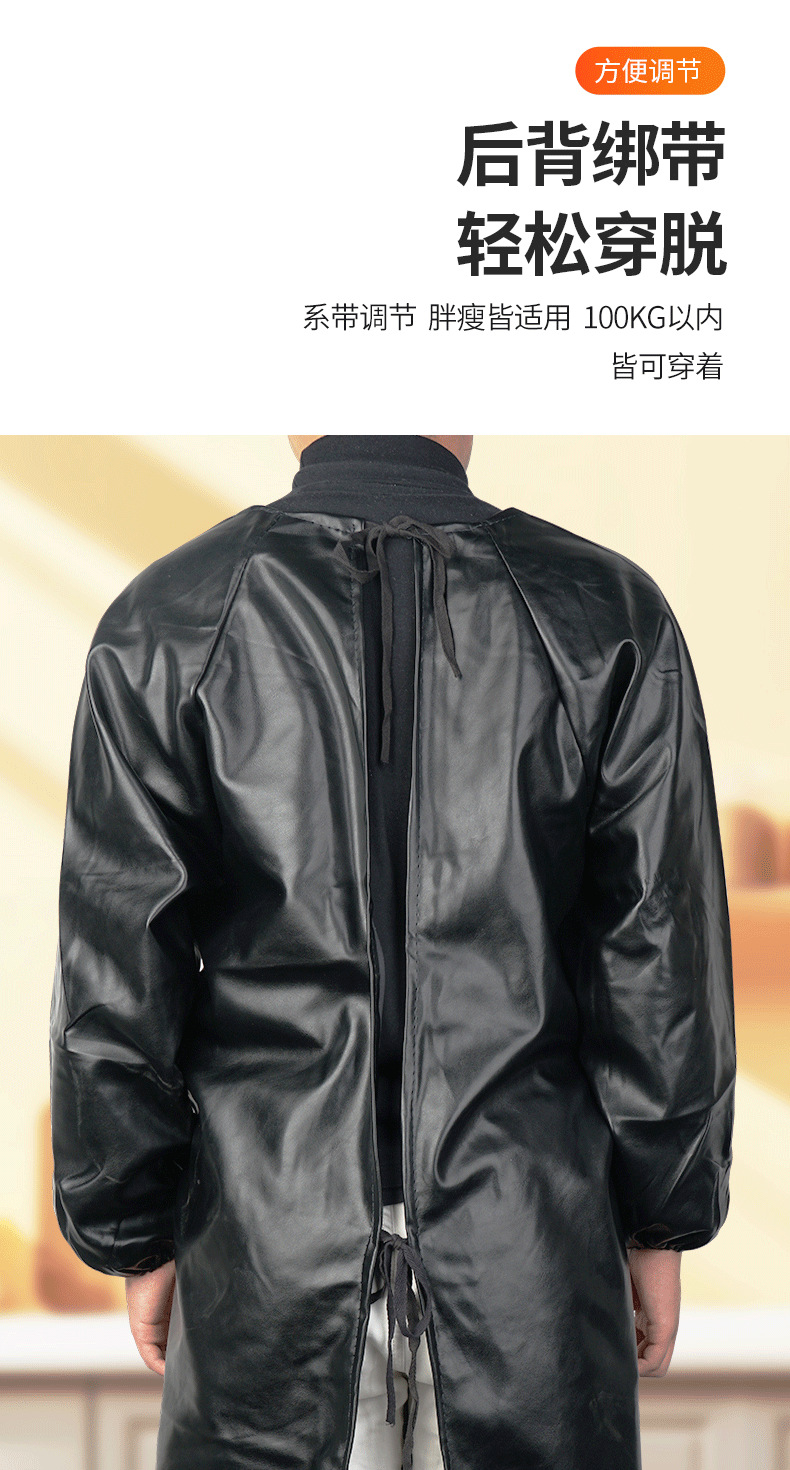 防水防油皮革エプロン成人反着倒背pu皮カバー男性長袖厚手作業服女性が腰を囲んでいる