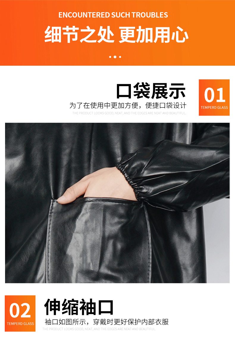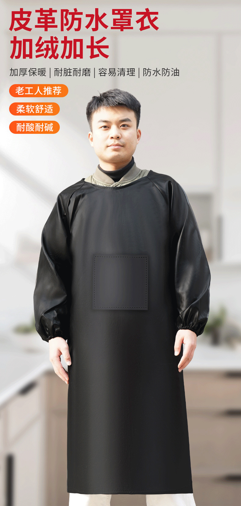 革カバーPUエプロン長袖カバーレストラン防水防油耐汚れ反着着大きい革エプロンカバー