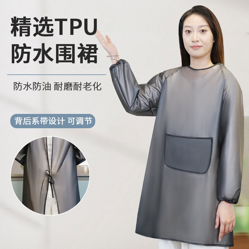 TPU防水罩衣长袖女厨房加厚防油围腰反穿干活工作服大人倒褂围裙