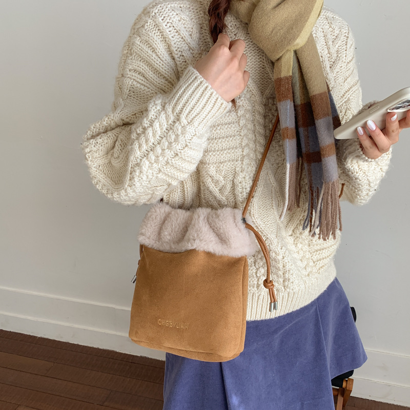 流行冬季羊羔毛小包女2025新款甜美时尚单肩斜挎包ins麂皮手机包