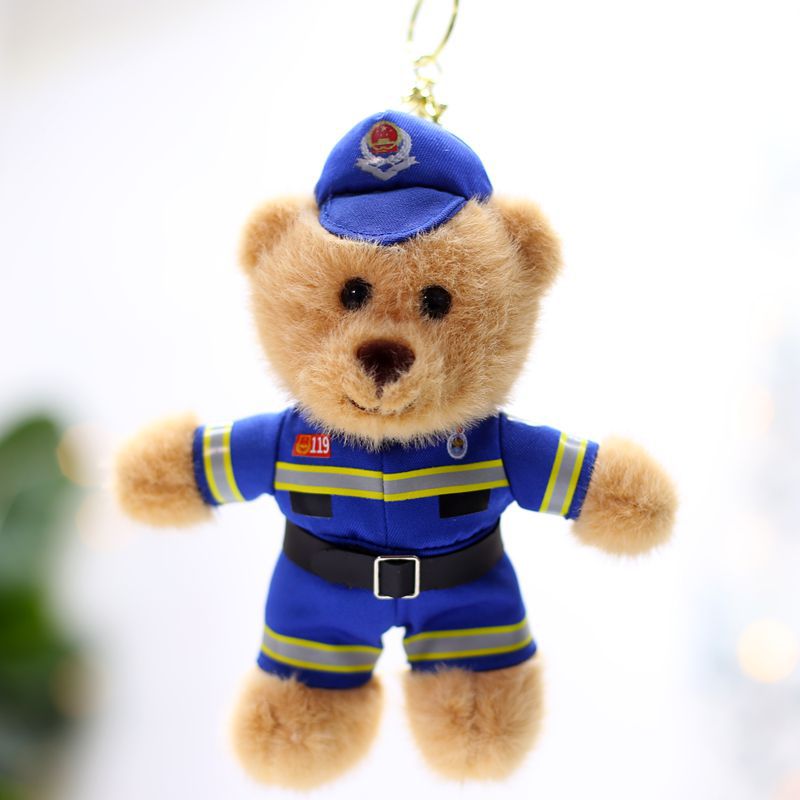震え音かわいい交通警官ベアーぬいぐるみ小ストラップ警察消防人形人形バッグキーホルダー人形