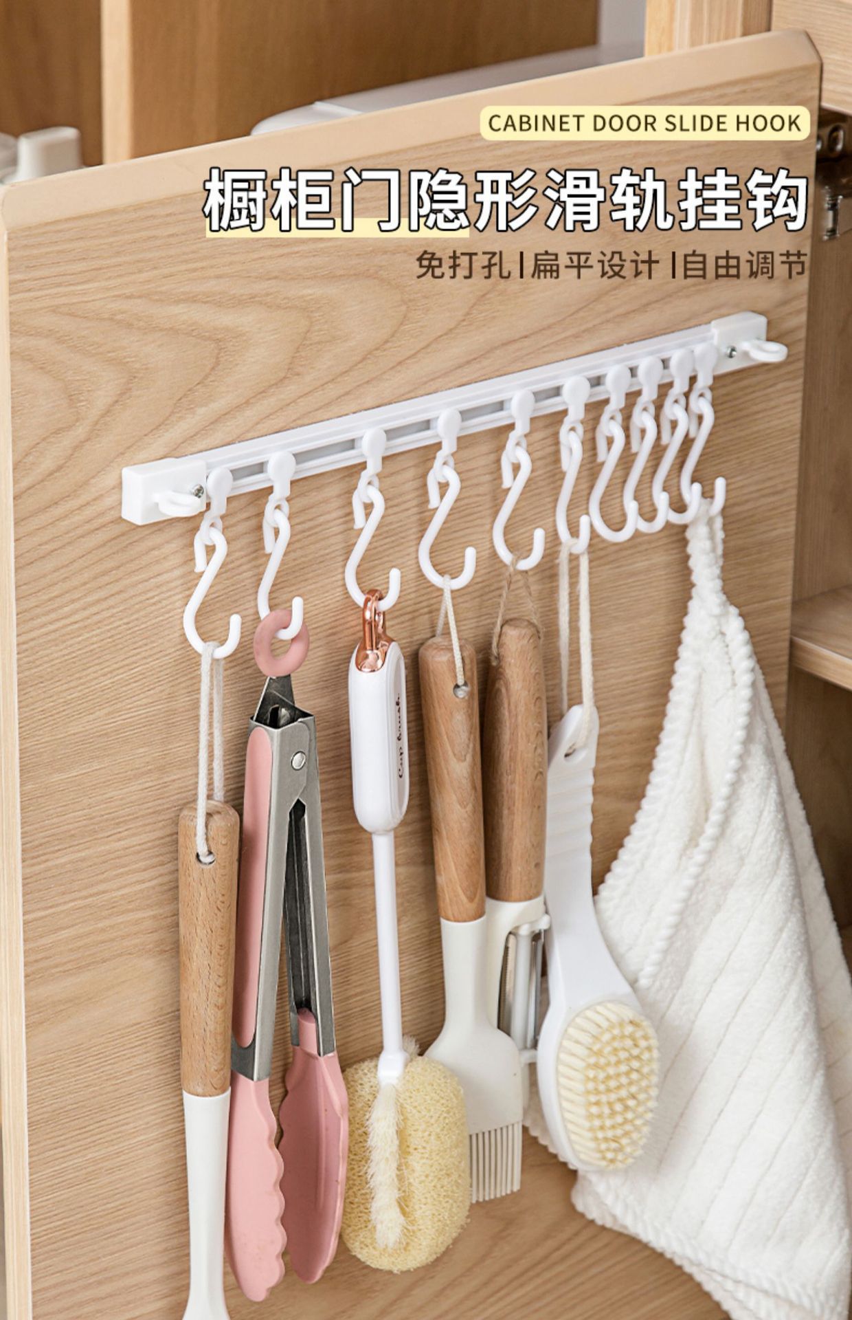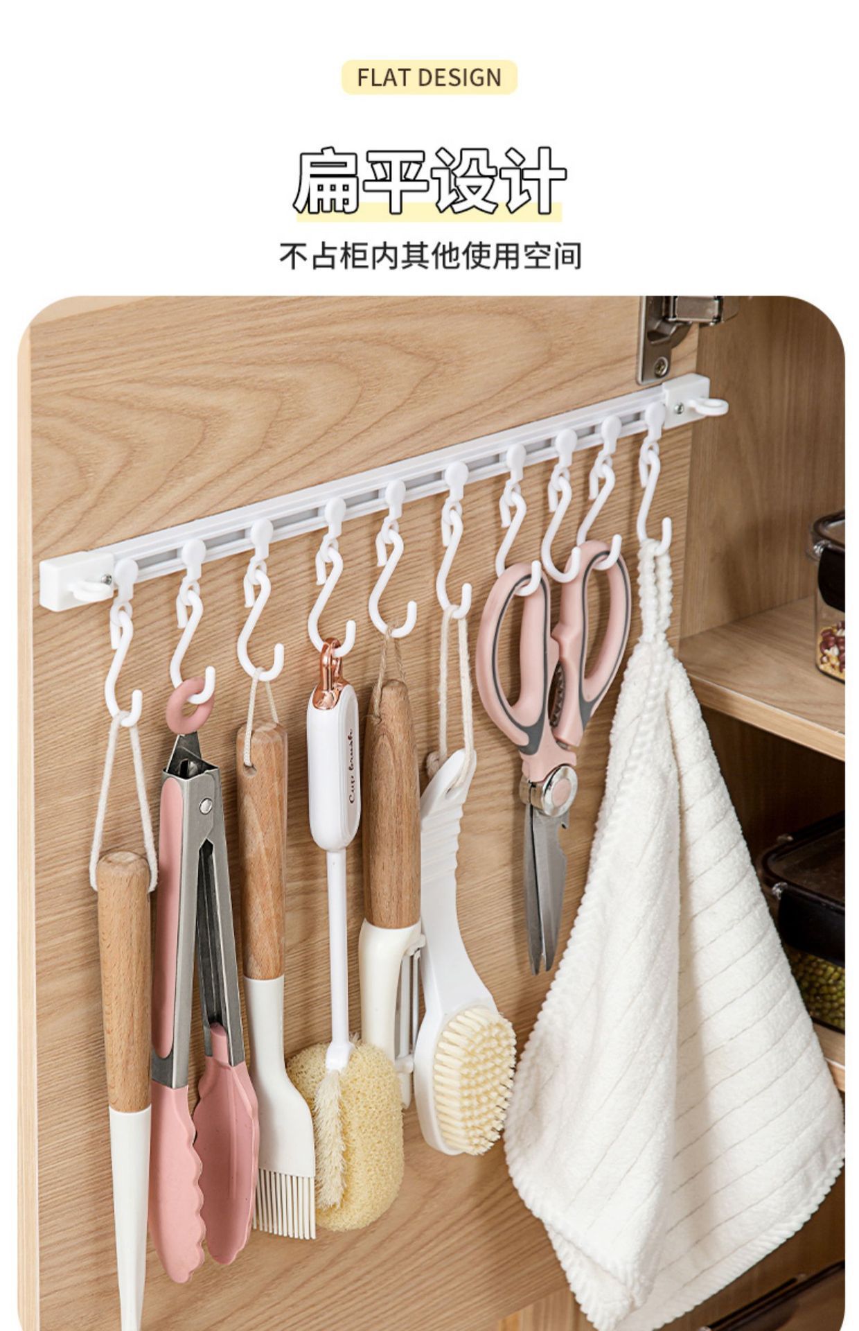 免打孔橱柜挂钩厨房排钩多功能可滑动长排贴钩轨道壁挂勾滑动S钩