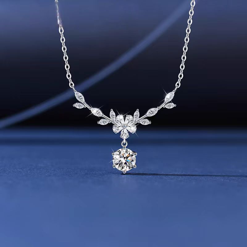 999 スターリングシルバーフラワー小麦耳ネックレス女性の森スタイルイン花枝月桂樹ライト高級鎖骨チェーンガールフレンドと親友へのギフト