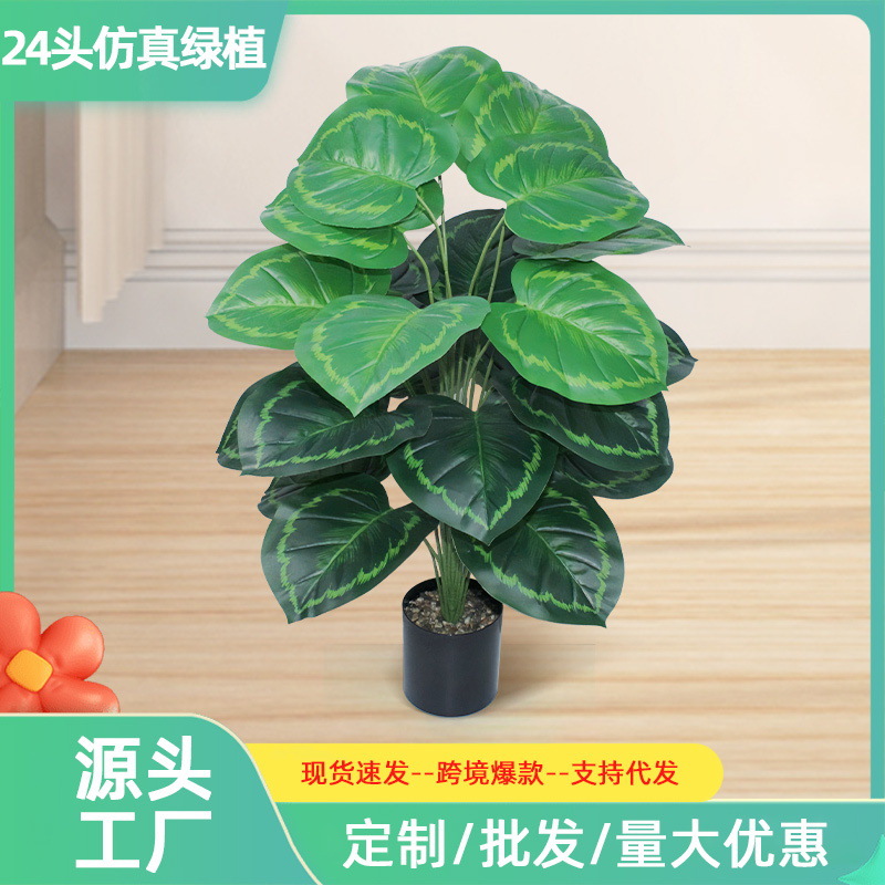 24頭シミュレーション緑植高級感大葉オフィス偽草緑葉植物寝室内造景装飾鉢植え