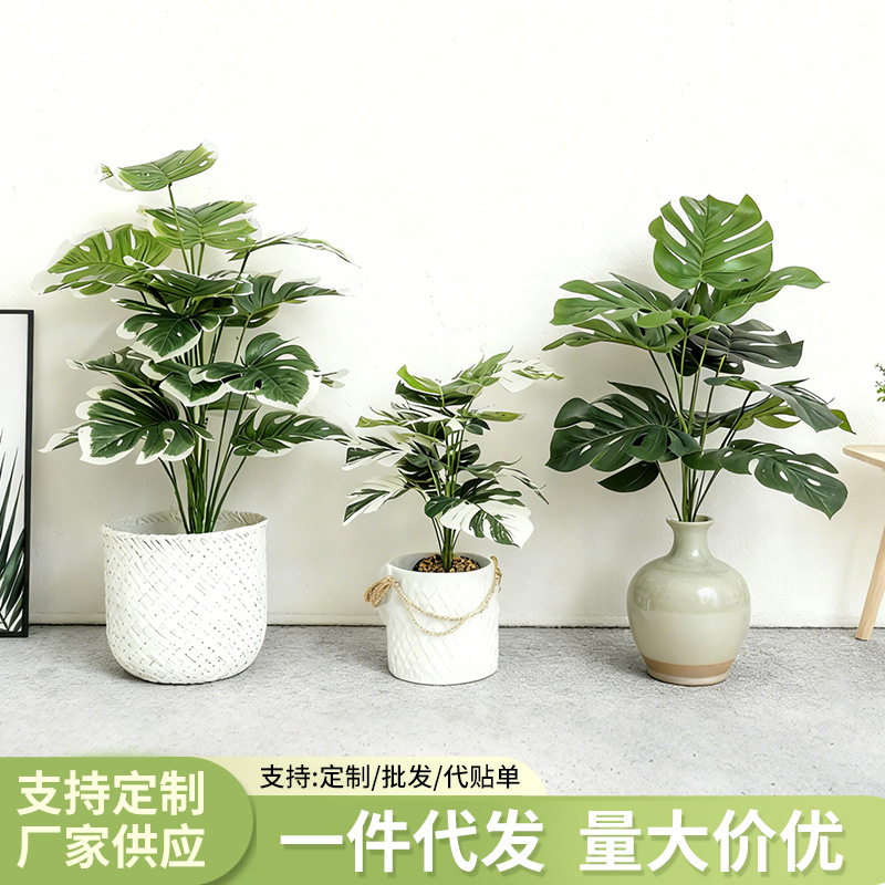 跨境仿真绿植特大18头龟背叶盆栽家居室内装饰大型植物龟背竹批发