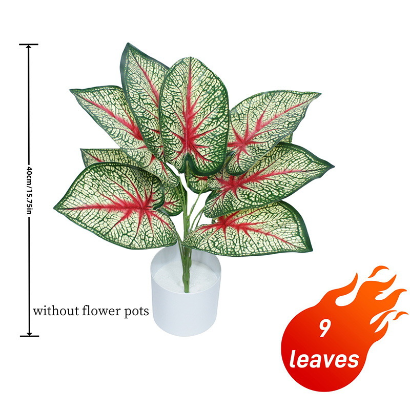 メーカーはシミュレーション植物の9頭のサトイモの葉の事務机を供給して鉢植えの寝室の葉の植物の緑の植栽の置物を並べます。