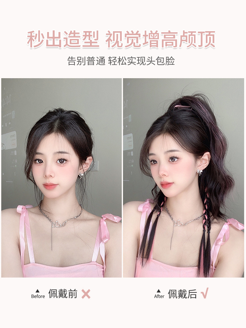 蝶結びヘアクリップ、偽毛編み込み、ボクシングツイストロングブレード、編み込みツール、サイドホイップハイポニーテールヘアアクセサリー、ダブルポニーテール