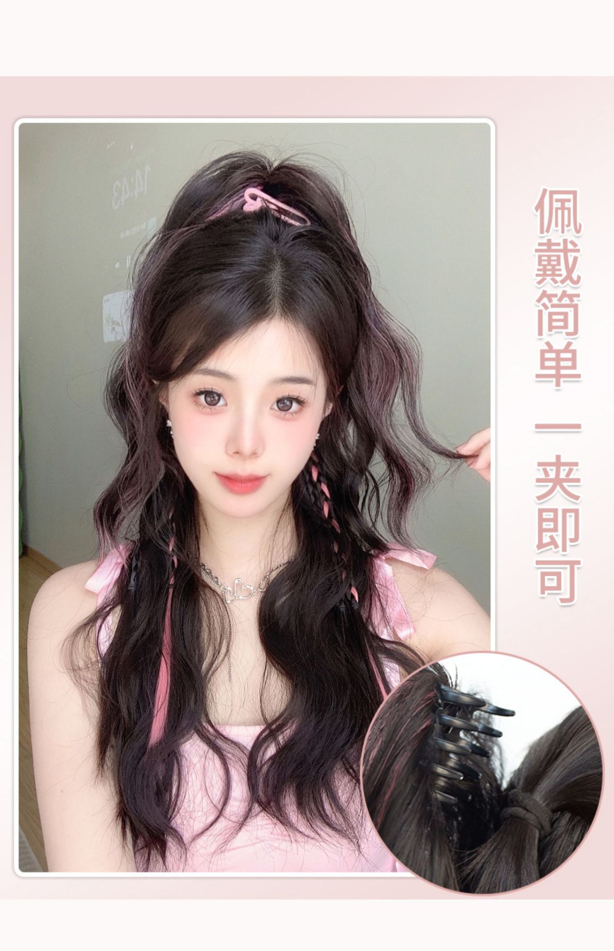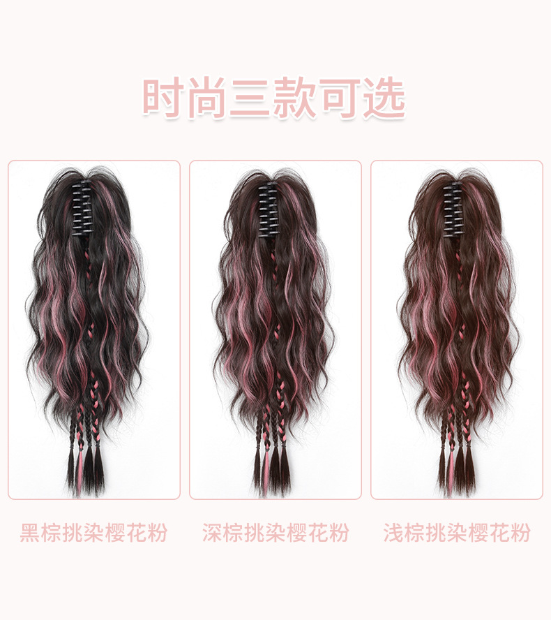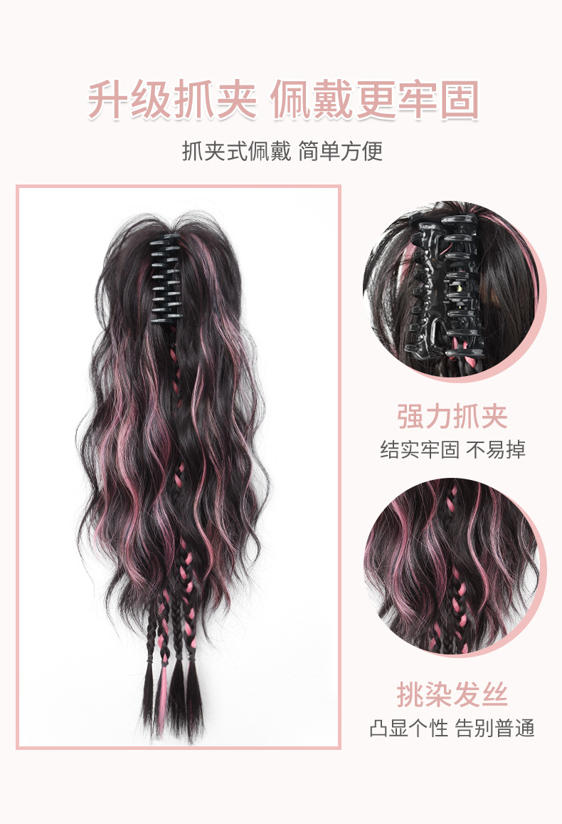 假发辫马尾女高级感黑玫瑰抓夹低马尾蓬松增发量水波纹卷发假辫子