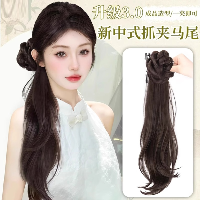 ウィッグ三つ編みポニーテールクリップ、優しい韓国風ローポニーテール、新しい中国風ウィッグ、人工毛、ナチュラルレイジースタイルアーティファクト