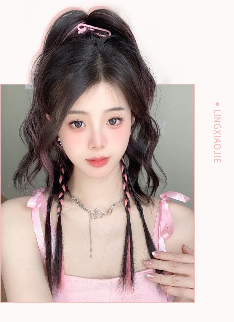 許昌ウィッグ編み込み髪 女子ハイポニーテール ホットガール ボクシングブレード カラフルスイートツイストヘア ツイストポップブレード ダブルポニーテール