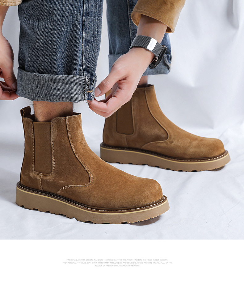 Large size47本革カジュアルチェルシーブーツハイギャングインロンマーティンブーツレトロGenuineLeather