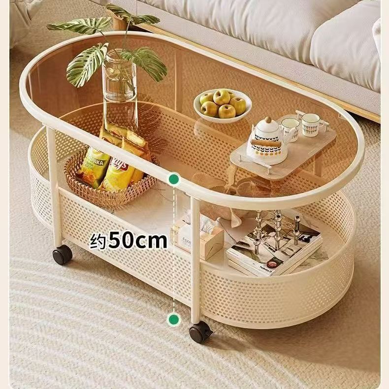 北欧钢化玻璃可移动沙发边几边柜简约现代床头侧边柜小茶几小推车