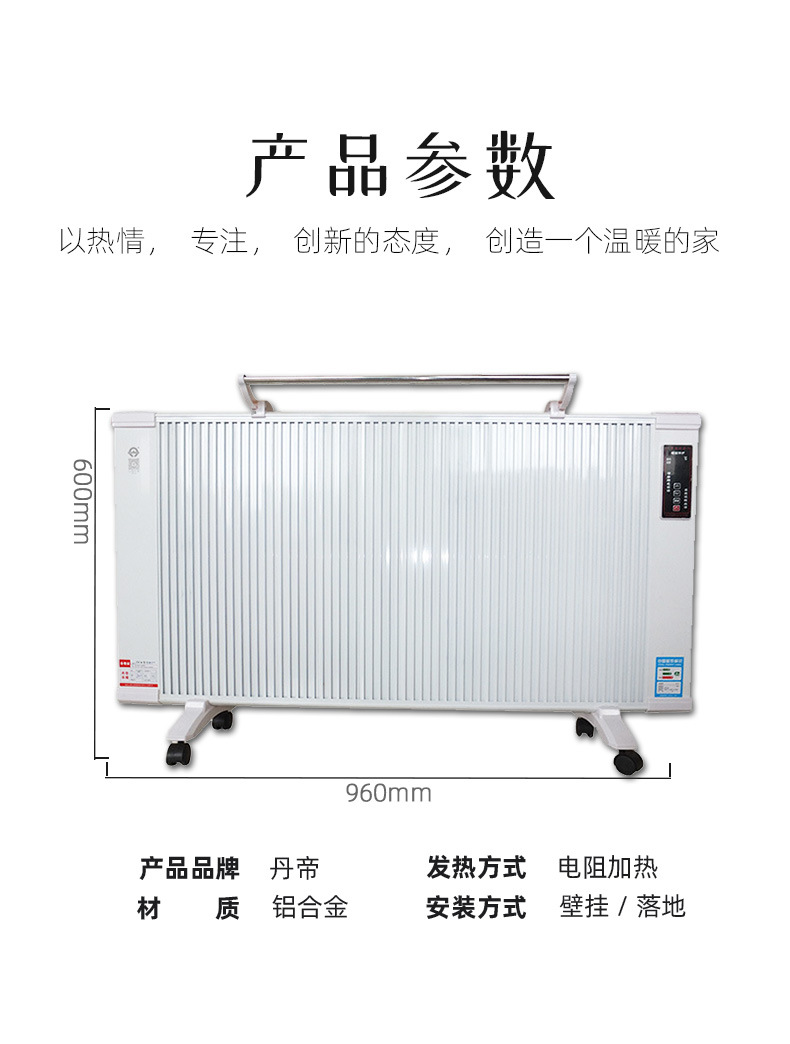仕様 片面800ワット - 長さ80CM*高さ60CM*厚さ6CM 加熱面積11平方メートル,片面1000ワット - 長さ96CM*高さ60CM*厚さ6CM 加熱面積13平方メートル,片面1200ワット - 長さ112CM*高さ60CM*厚さ6CM 加熱面積16平方メートル,片面1400ワット - 長さ128CM*高さ60CM*厚さ6CM 加熱面積18平方メートル,片面1600ワット - 長さ144CM*高さ60CM*厚さ6CM 加熱面積21平方メートル,片面1800ワット - 長さ160CM*高さ60CM*厚さ6CM 加熱面積24平方メートル,片面2000ワット - 長さ176CM*高さ60CM*厚さ6CM 加熱面積27平方メートル,片面2200ワット---長さ192CM*高さ60CM*厚さ6CM 加熱面積30平方メートル,両面800ワット - 長さ80CM*高さ60CM*厚さ10CM 加熱面積15平方メートル,両面1200ワット - 長さ112CM*高さ60CM*厚さ10CM 加熱面積20平方メートル,両面1600ワット - 長さ144CM*高さ60CM*厚さ10CM 加熱面積25平方メートル,両面2000ワット - 長さ176CM*高さ60CM*厚さ10CM 加熱面積30平方メートル,片面600ワット - 長さ77M*高さ60CM*厚さ6CM 加熱面積9平方メートル