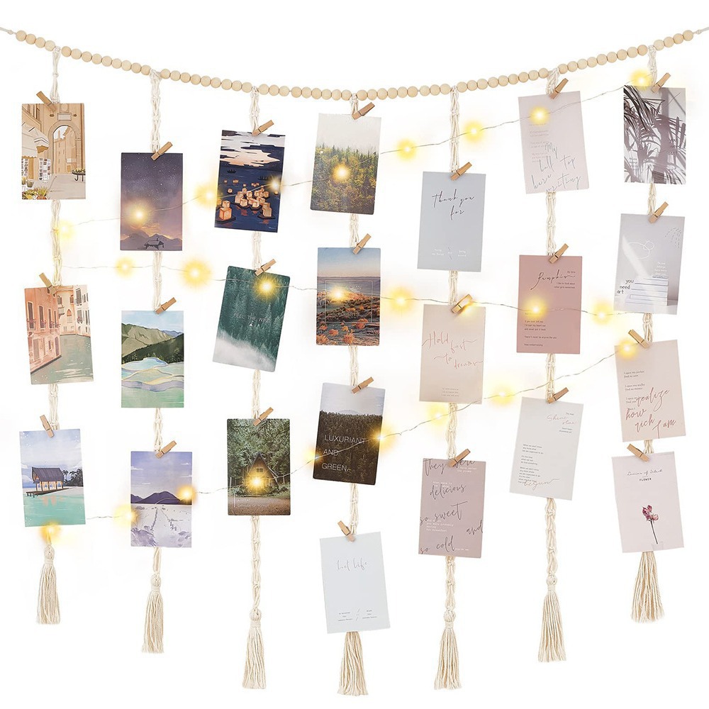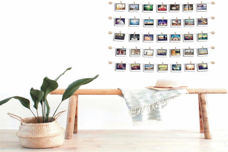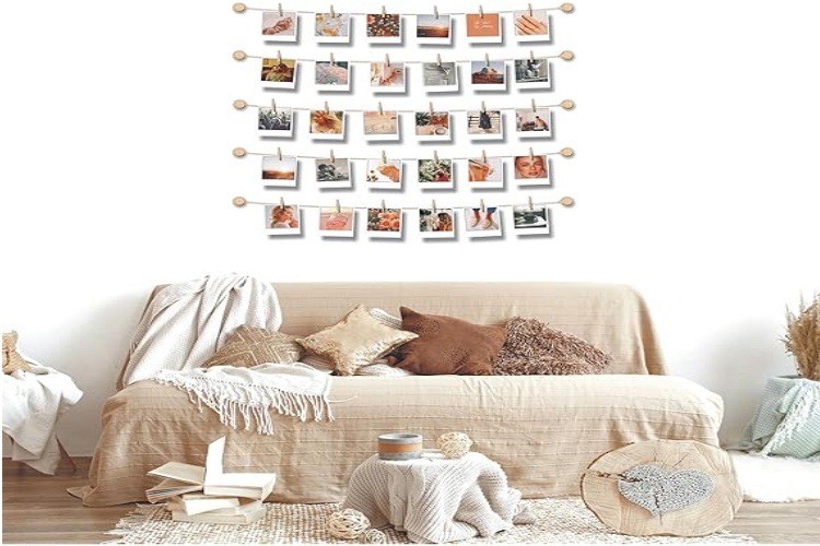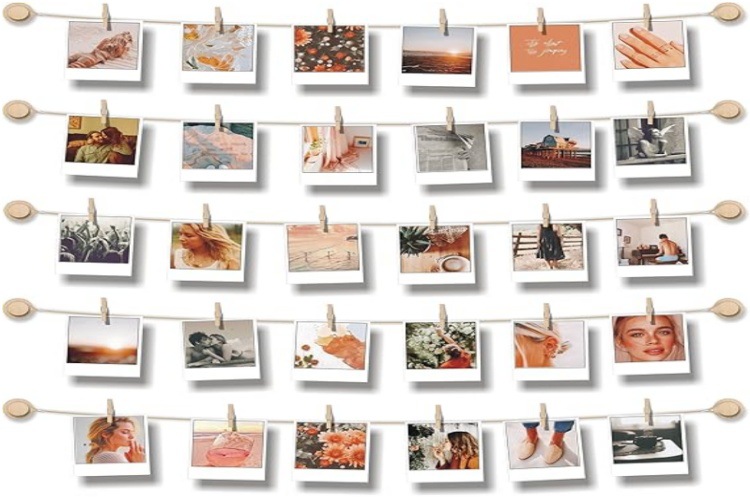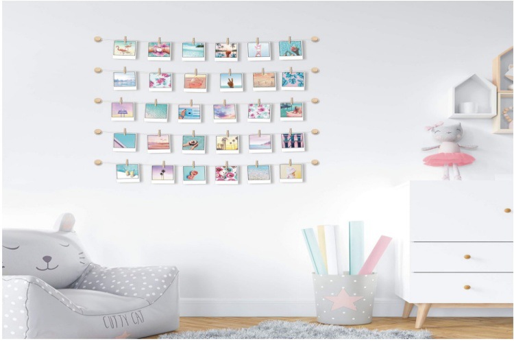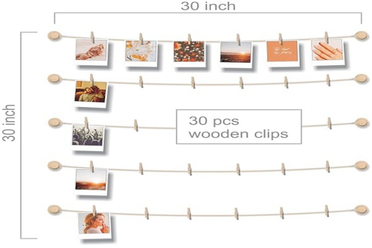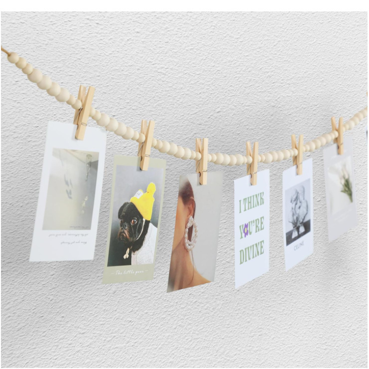产品:由10个木头钩(无痕款)+30个木夹子组成照片收纳夹+5条绳子