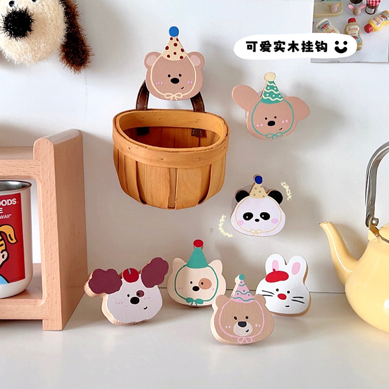 卡通可爱ins风免打孔挂钩实木壁挂粘钩门后衣帽钩儿童房柜门把手