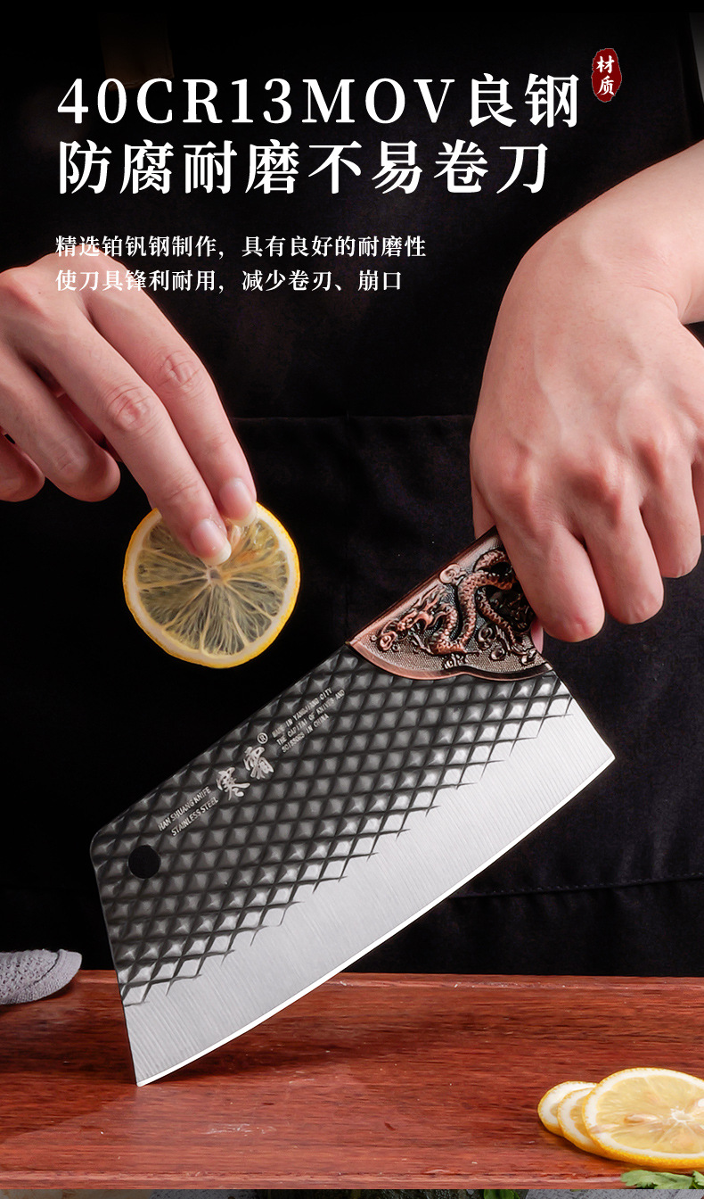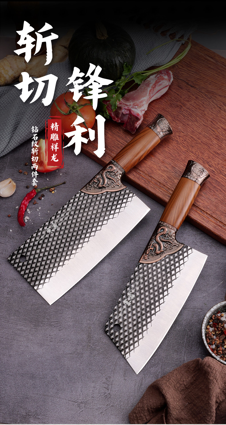砲弾鋼-【龍鳳切刀猛虎切骨刀】龍泉包丁セットキッチン家庭用料理人用刀