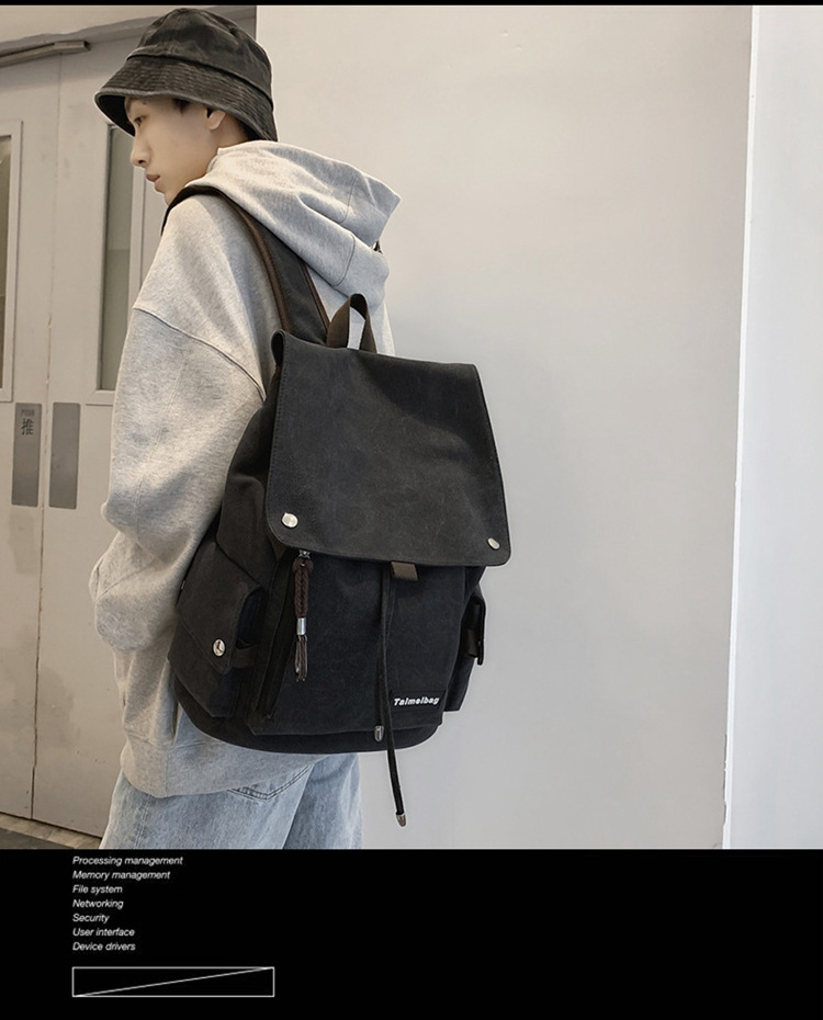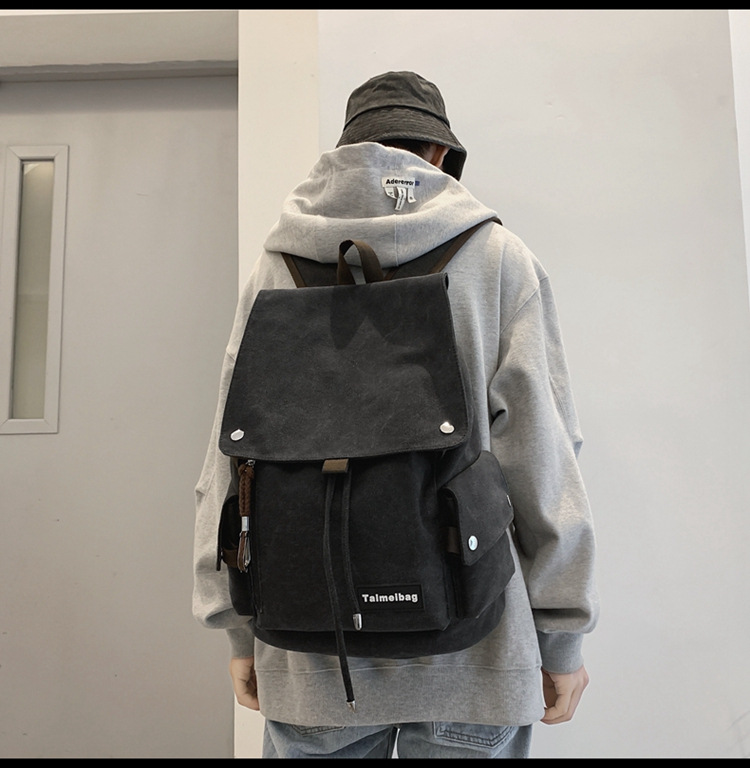 日本のトレンディでクールなレトロなワークウェアバックパック韓国語版原宿オル高校男子大学生スクールバッグ女性バックパック