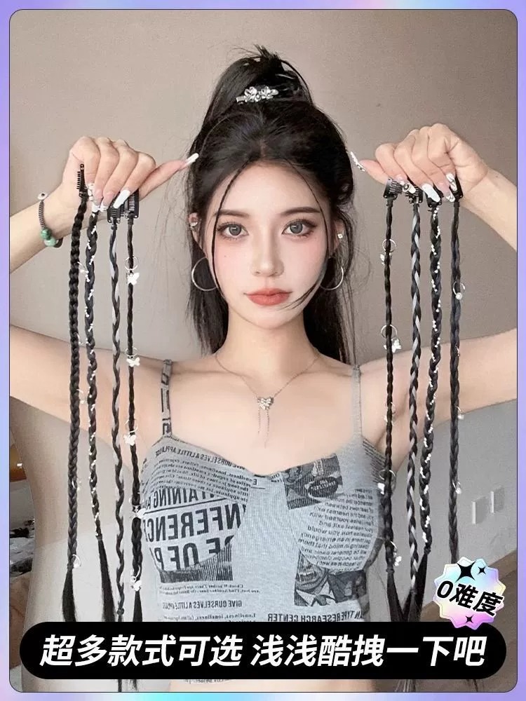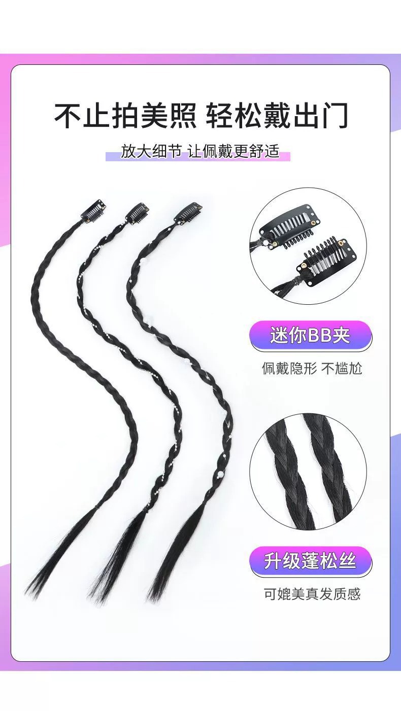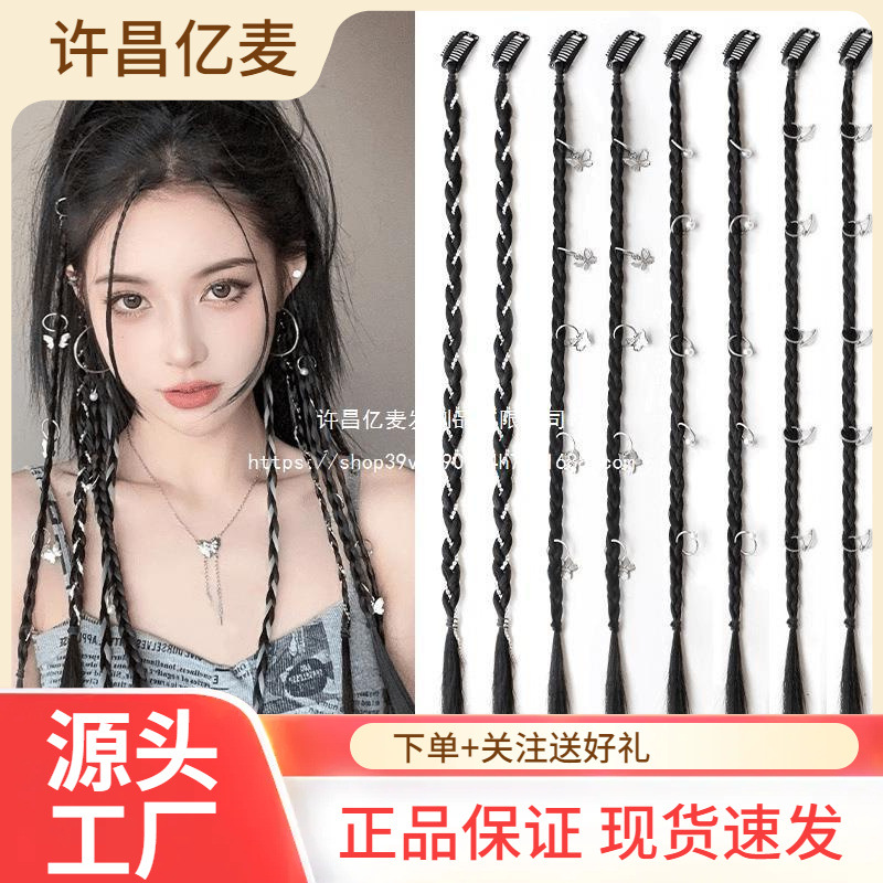 三つ編み、小さなダーティードレッドウィッグ、三つ編みヘアピン、ロング三つ編みポニーテール、ロングヘアチェーン、ホットガール偽三つ編み、クロスボーダー