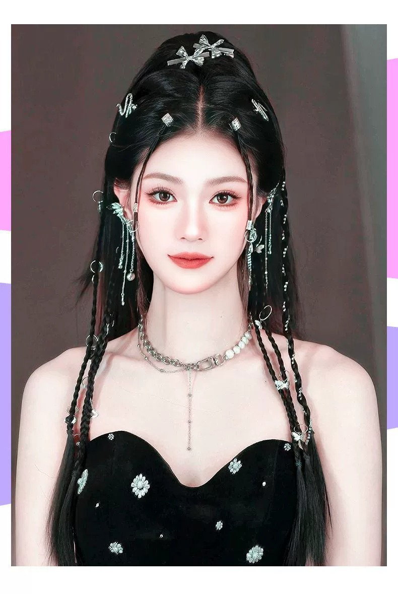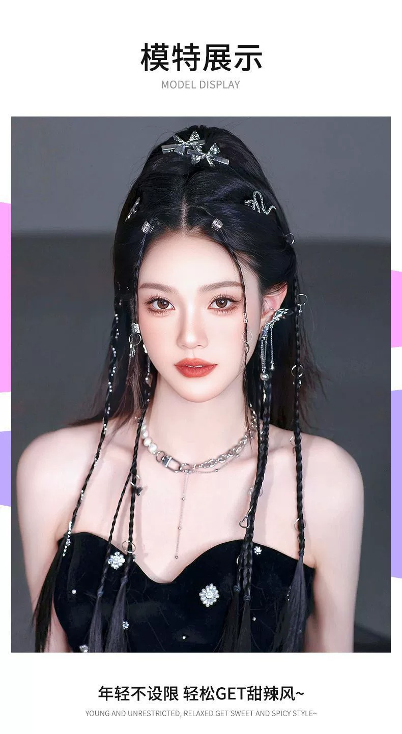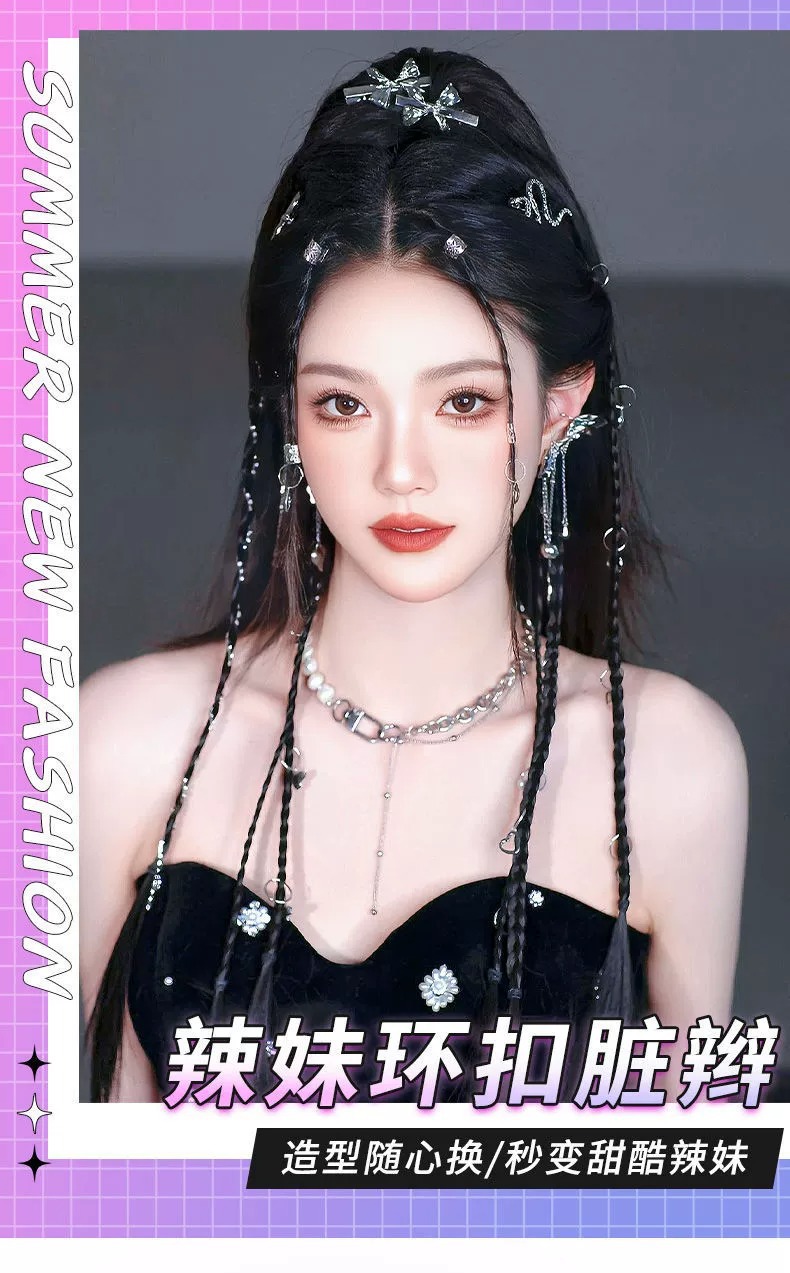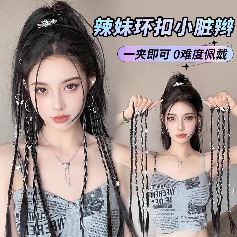 环扣编发脏辫假发女辣妹网红拳击辫长辫子马尾彩色辫子拳击辫发饰