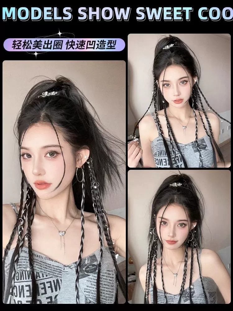 かつらのお下げの子供のボクシングの魚の骨のお下げのポニーテールのy 2kのギャルはシミュレーションして編みます。