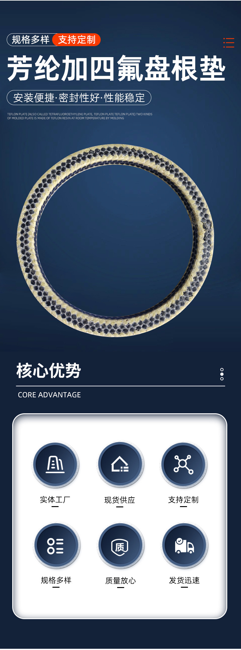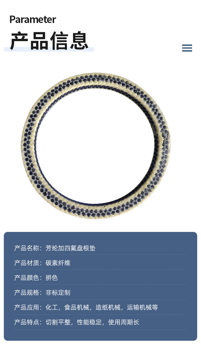 アラミドテフロン繊維ガスケット工業用耐摩耗性メカニカルシール充填材混合ガスケット高温耐性化学工業用