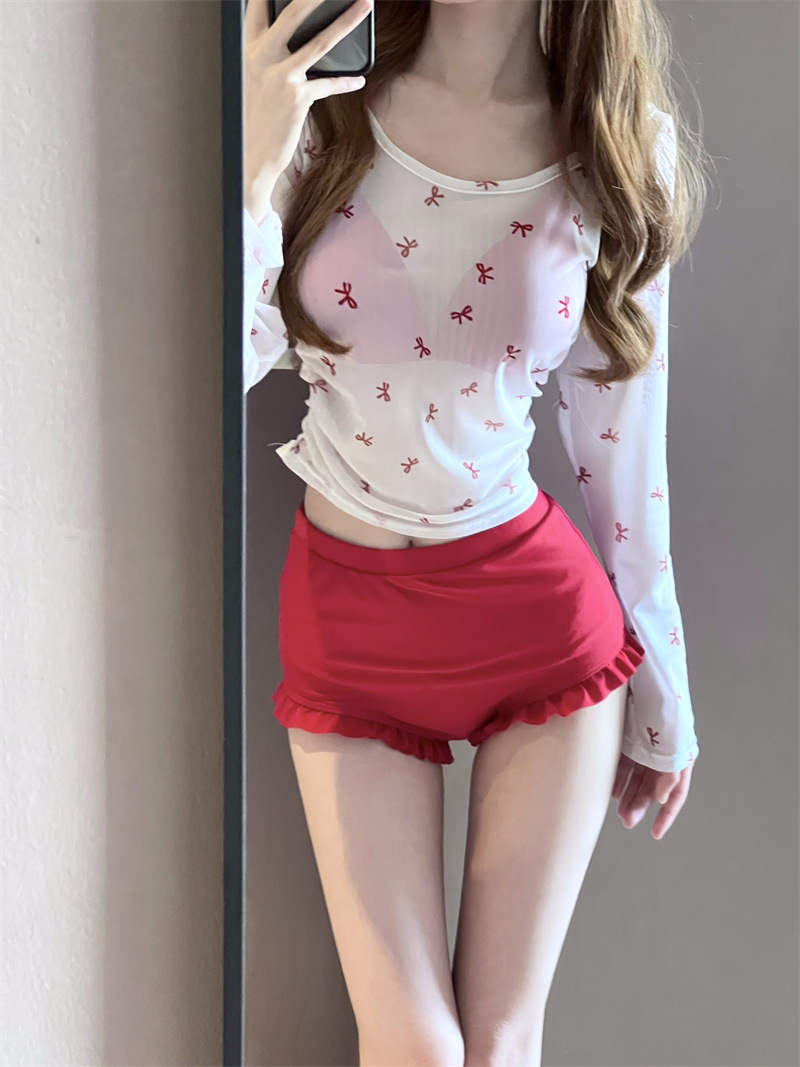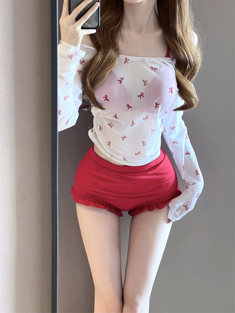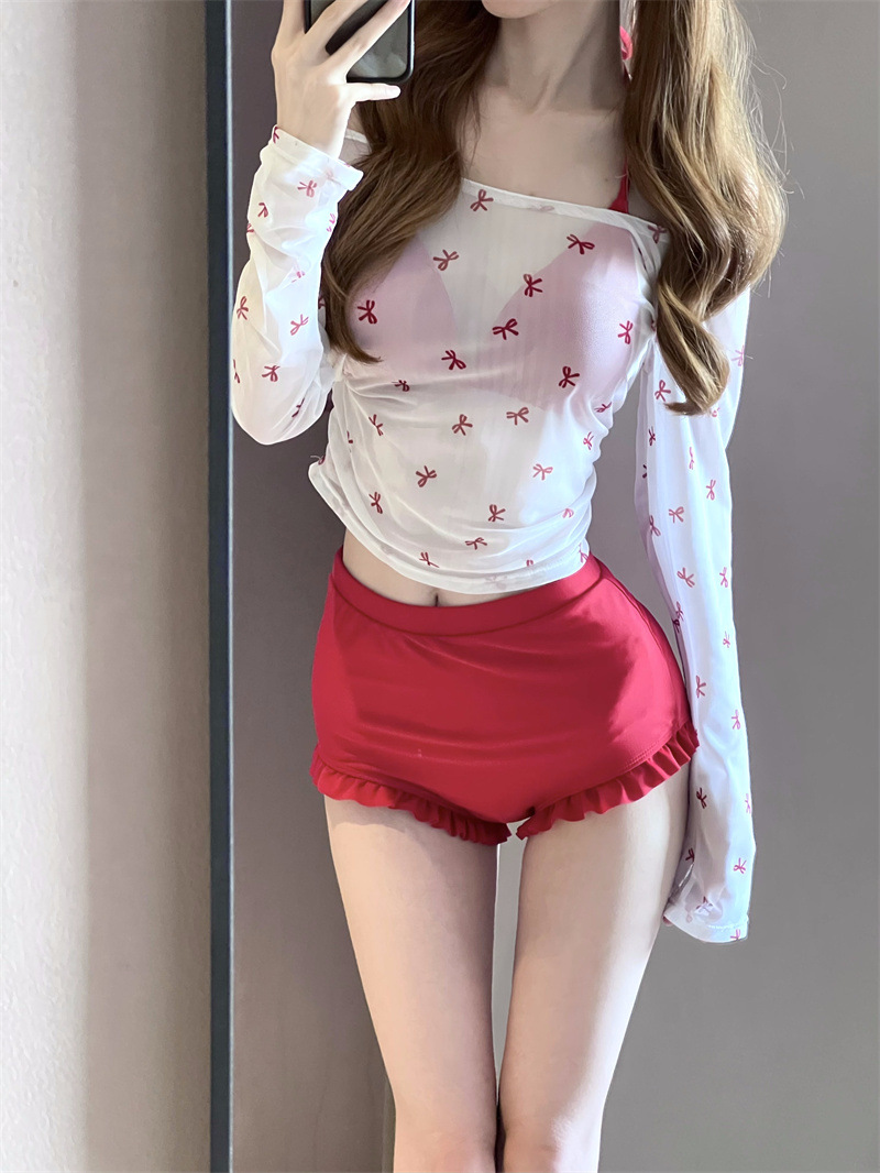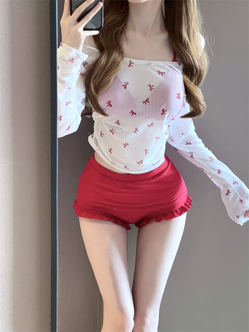 新品スプリット水着レディース韓国ins純欲少女感蝶結び日焼け止めブラウスビキニ温泉水着