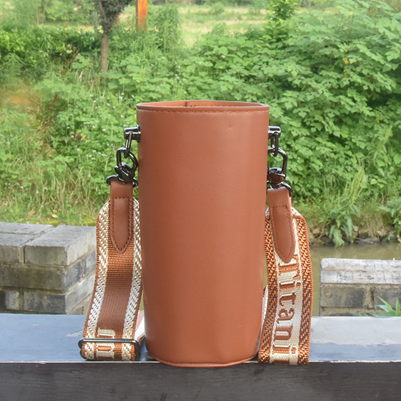 高級皮質カップカバー保温カップチタンカップ保護カバー手持ち紐付き斜め掛けPU皮革印刷可能ロゴ