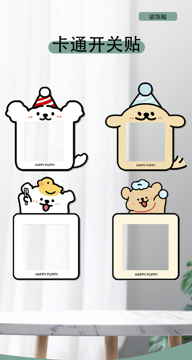 创意小狗开关边框套墙贴插座面板遮丑可爱墙面灯开关装饰贴卡通