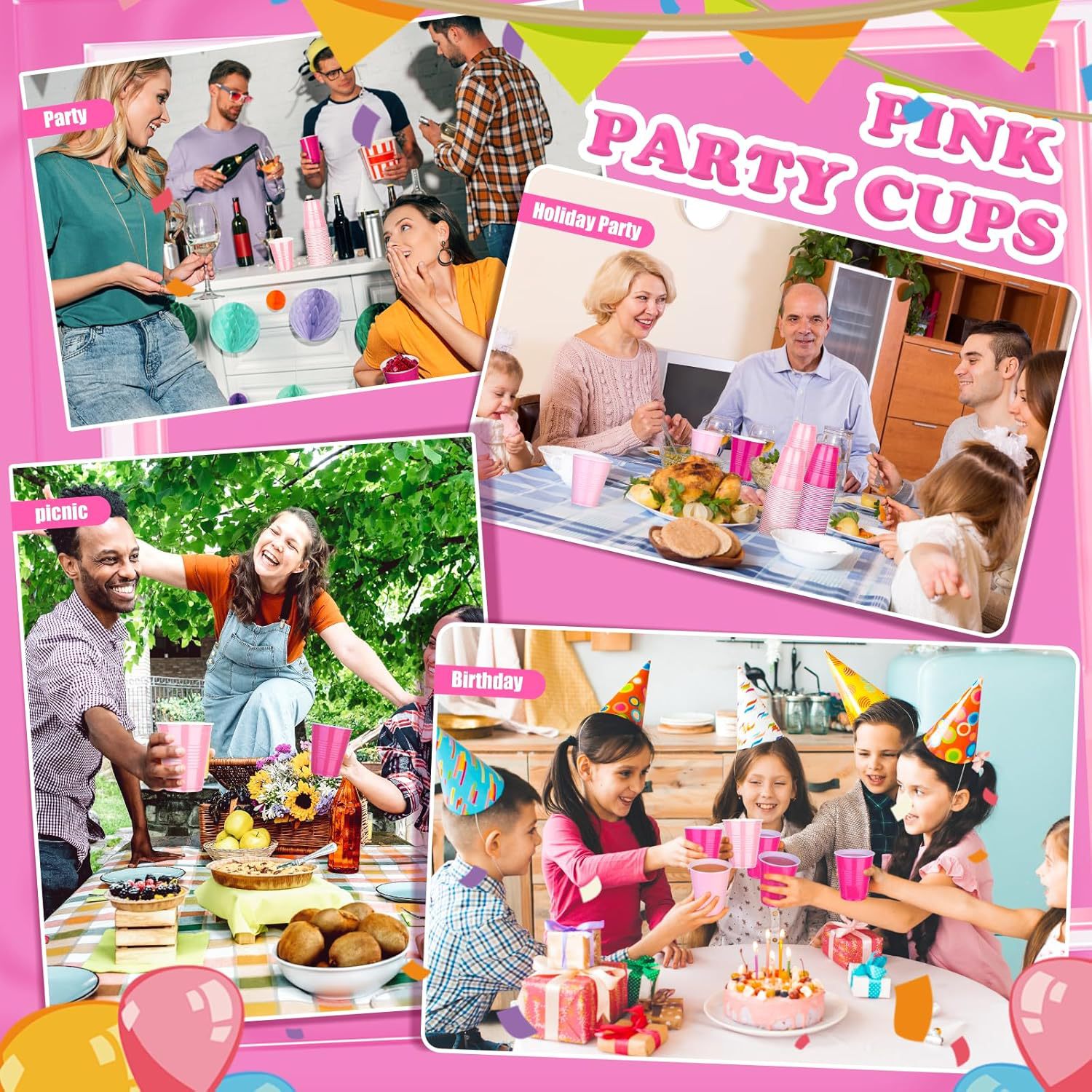 50个一次性12盎司酒杯婚礼生日鸡尾酒派对12oz粉色冷饮塑料PET杯