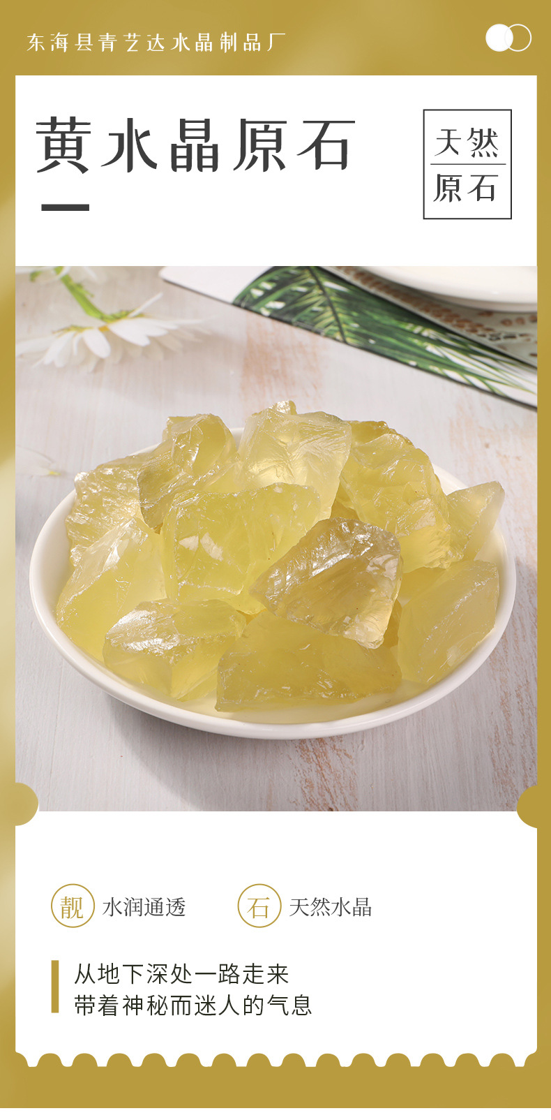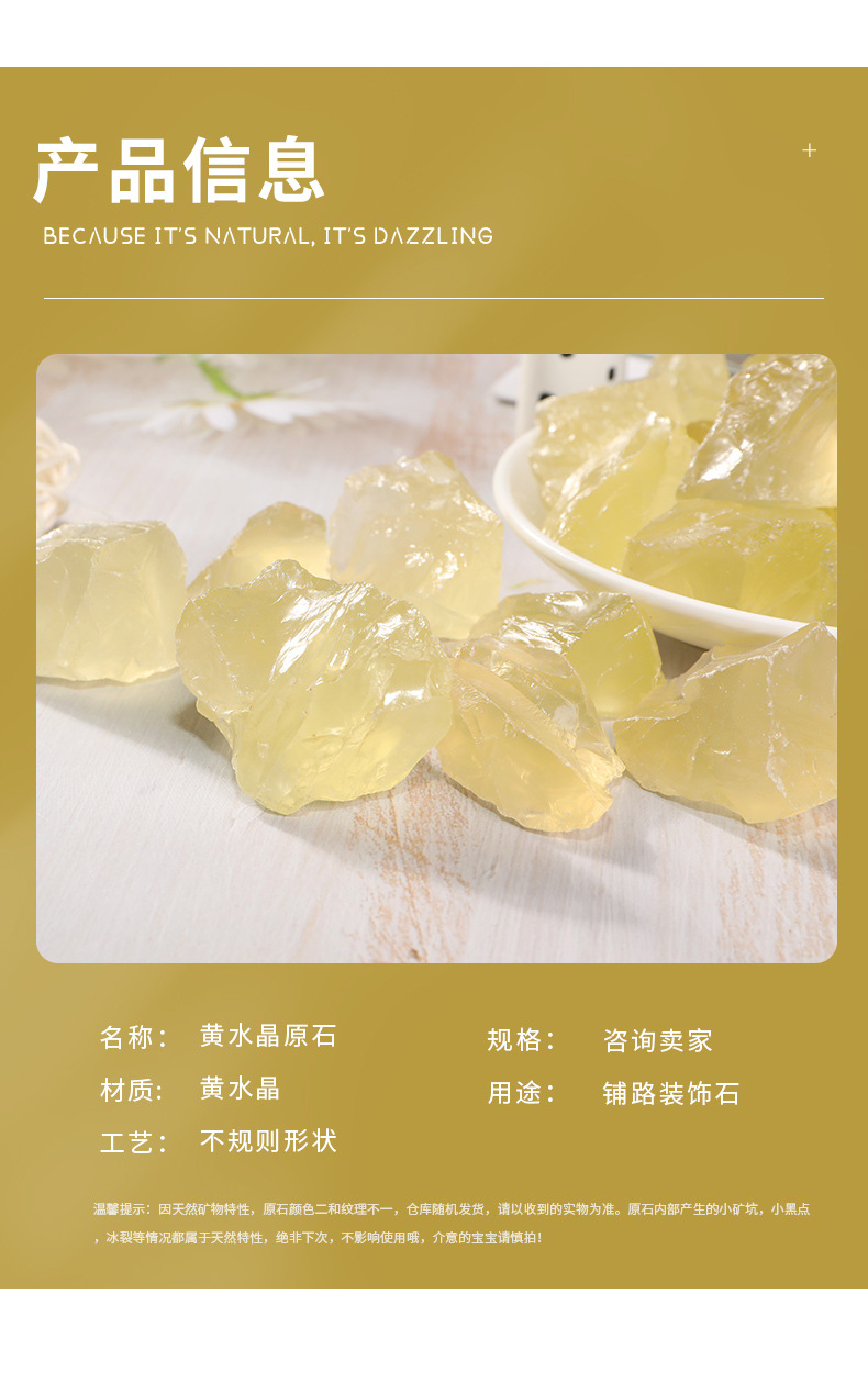 黄水晶の砕石、消磁石、植木鉢や水槽の底敷き、仏具、風水原石、装飾品の卸売
