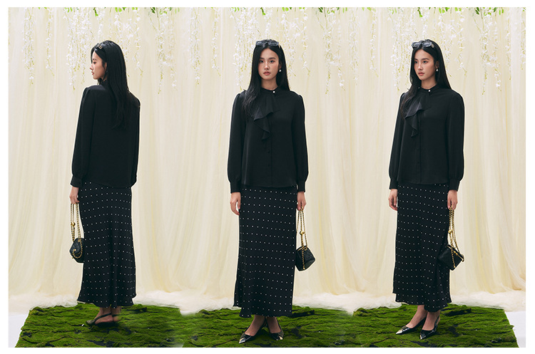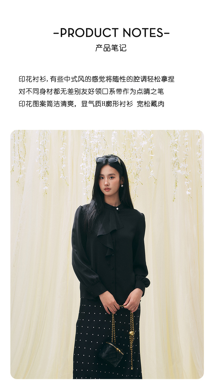 【盛都】26春新作 フレンチレトロ風 レディースリボン付きブラックシャツ 小柄さん向け 高級感 万能コーデ