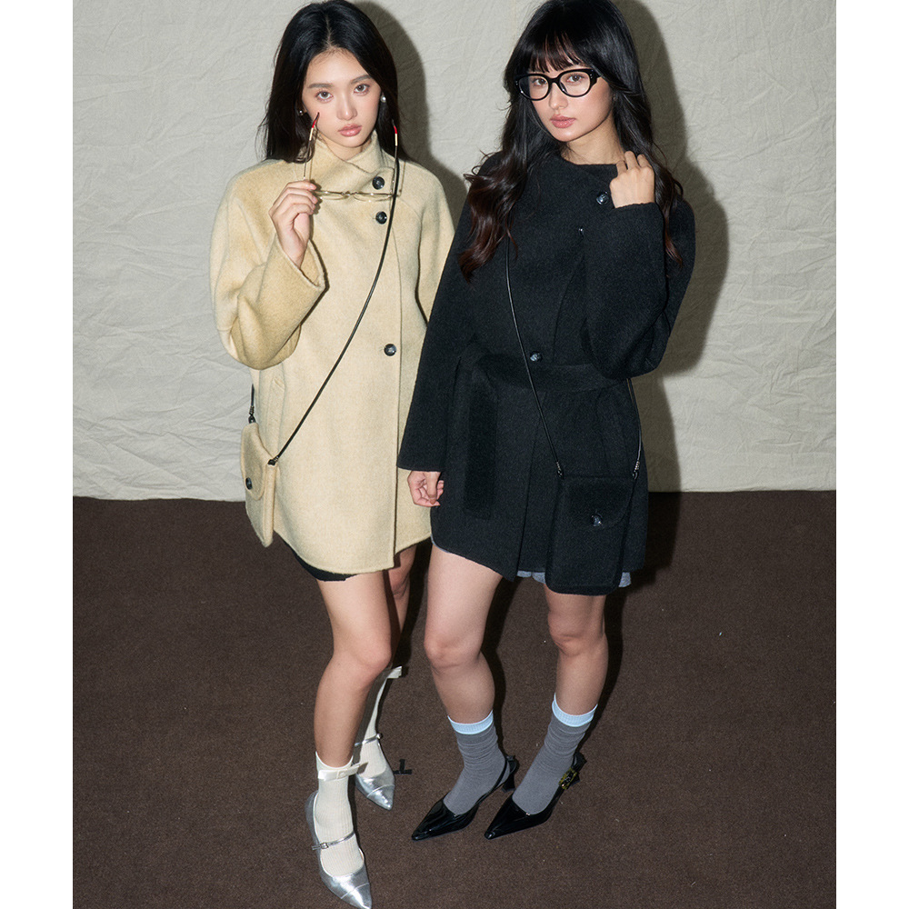 【盛都】25冬新作 日本製100%ウール スタンドカラー ツーウェイバッグ付き ミドル丈 リバーシブルウールコート