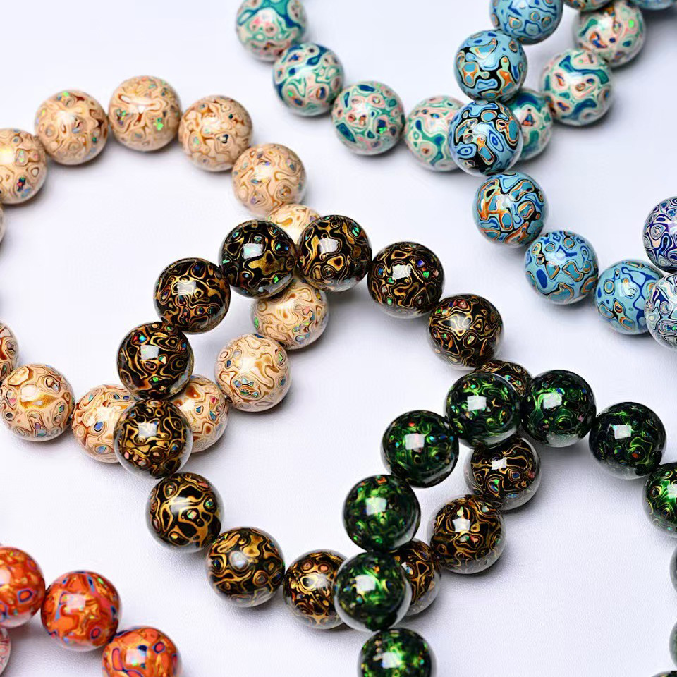 代件非遺大漆珠手串散珠象眼螺珠欧泊手作り塗装工芸品卸売り