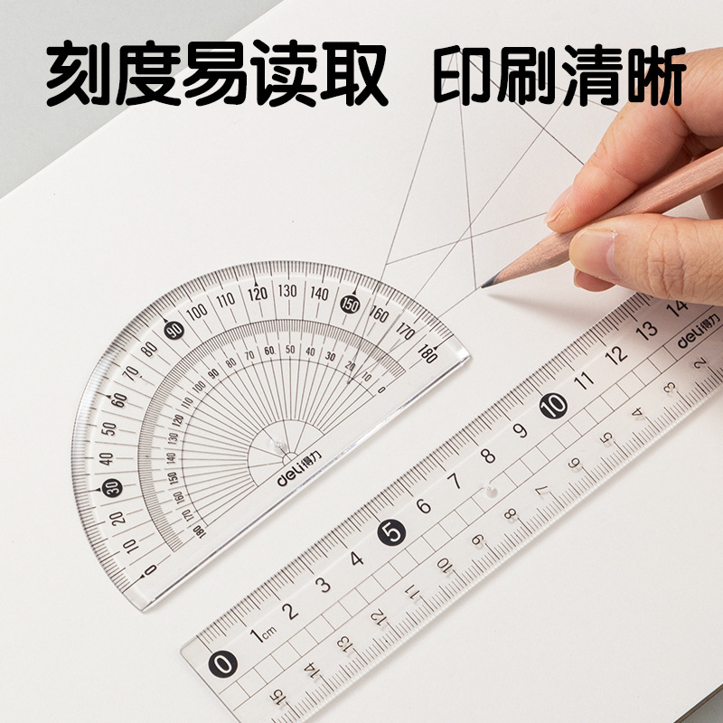 デリ 71988 取りやすい定規セット 15cm 学生定規セット 直定規 三角定規 分度器 マルチ仕様 透明