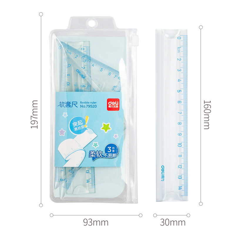 デリ 79520 ソフト定規 4点セット 定規セット 学生定規 三角定規 分度器 製図セット