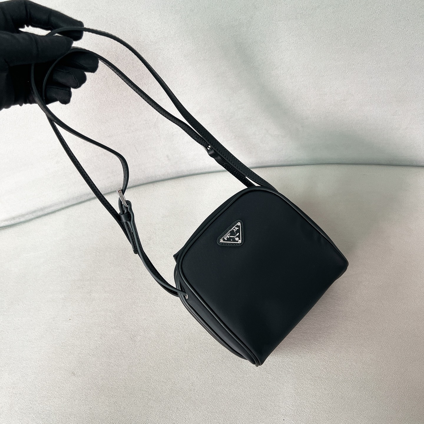 Pラダメンズ新型カメラバッグ手提げ小角ケースバッグ若いファッションシングル肩斜め掛け郵便バッグ