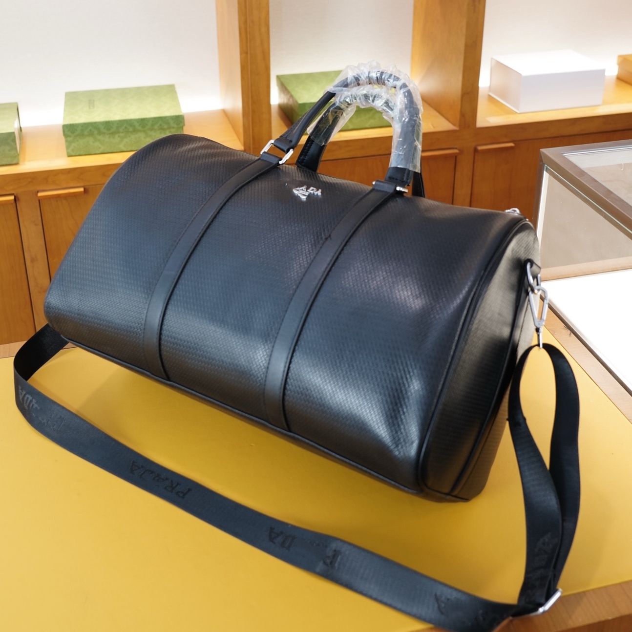Pラダー旅行鞄メンズハンドバッグ大容量出张旅行本革ショート搭乗レジャー潮フィットネスバッグ高