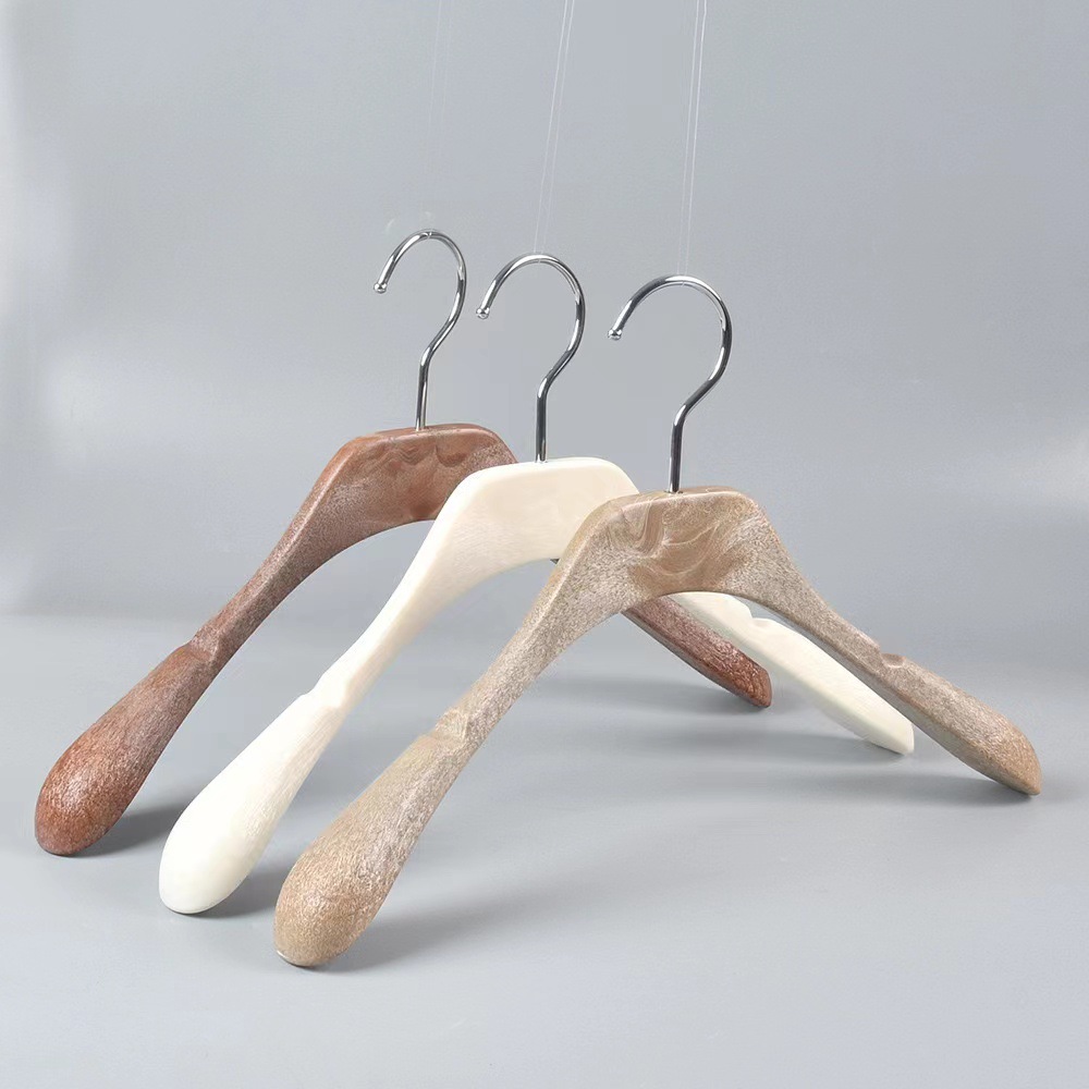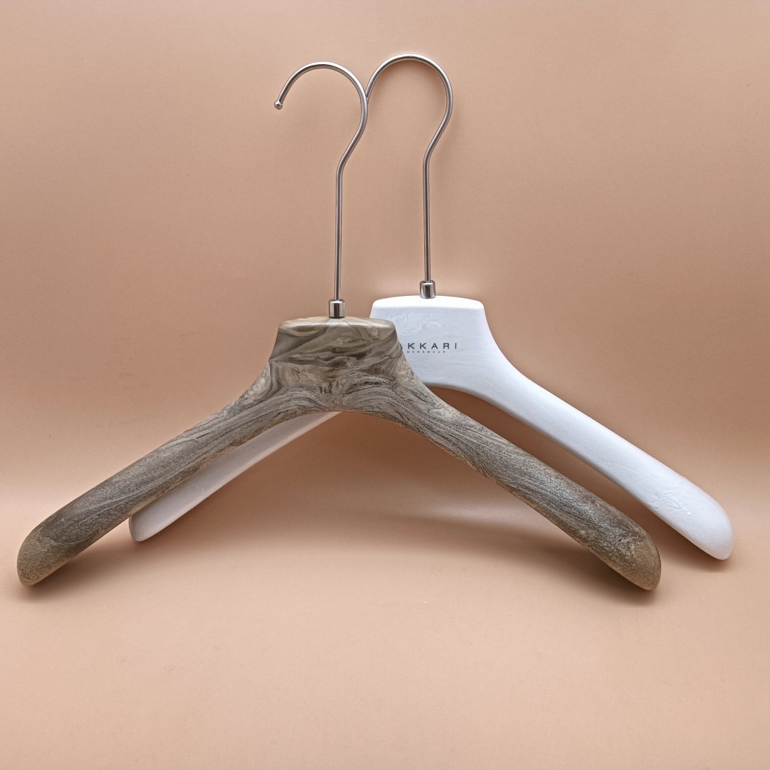 シンプルでレトロな洋服店陳列優先樹脂ハンガー高級感環境保護原木風女性樹脂ハンガー工場