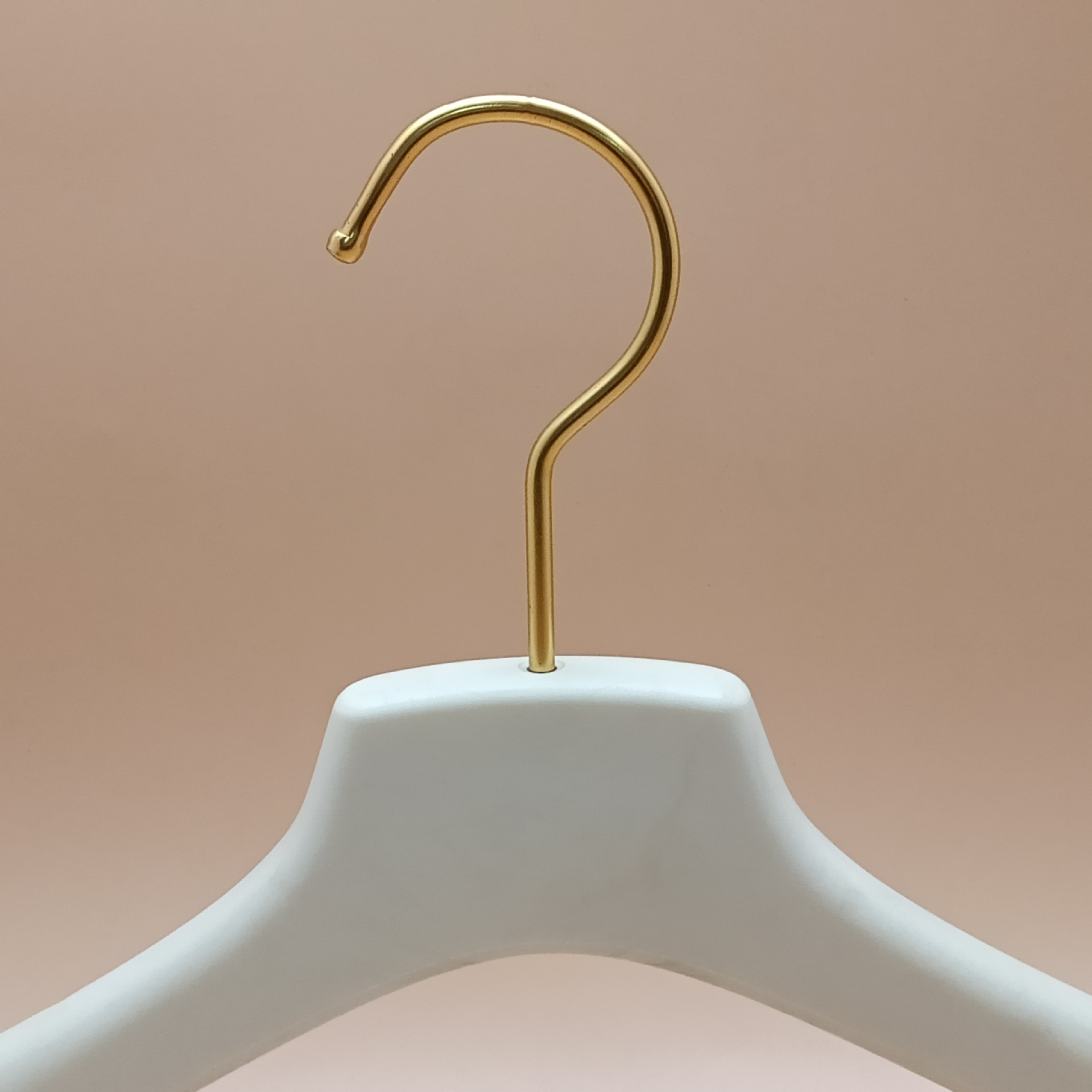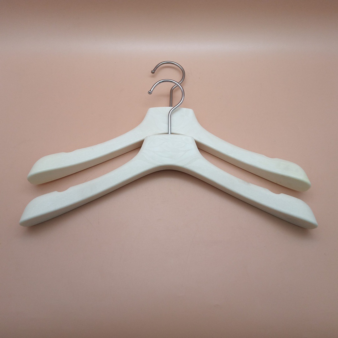 シンプルなファッション環境保護樹脂ハンガー洋服店の広い肩の男女洋服店のプラスチックは原木色のハンガーに似せています。