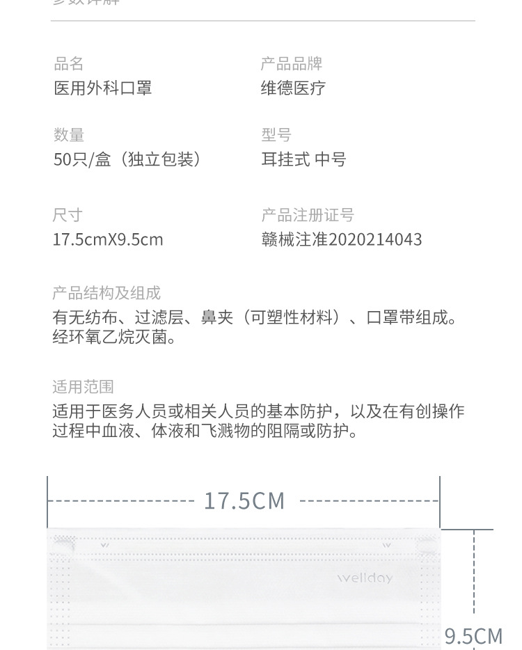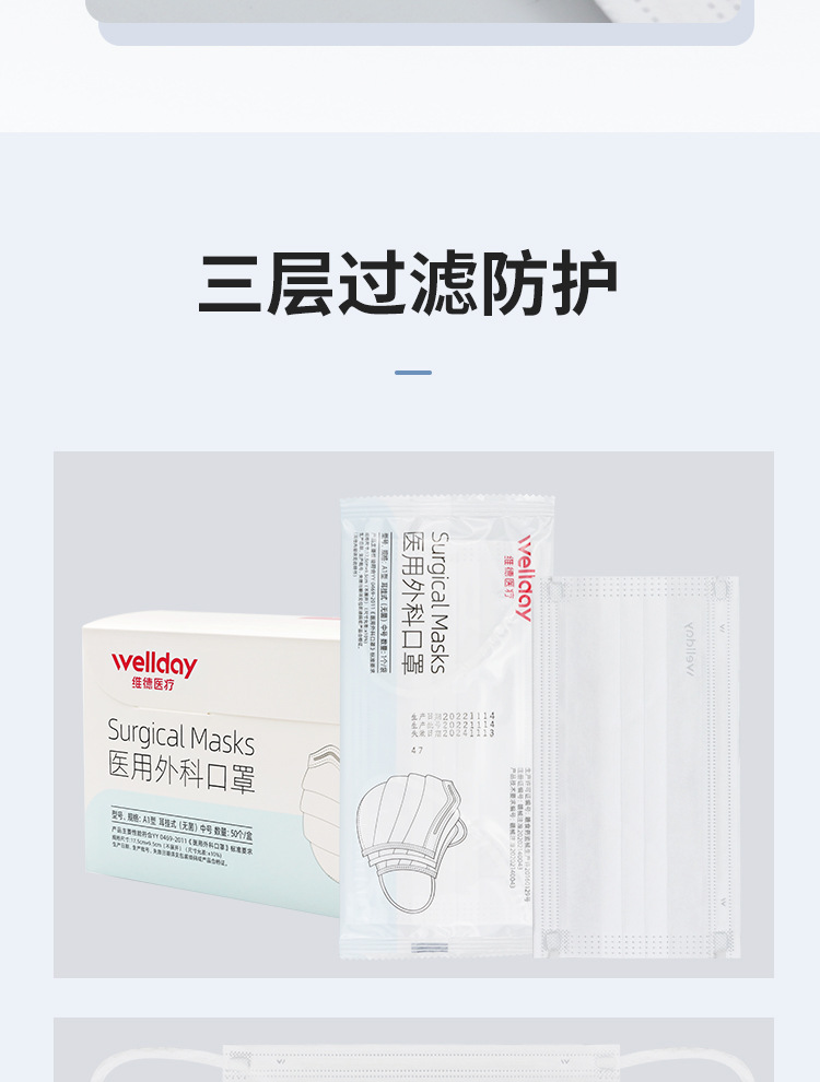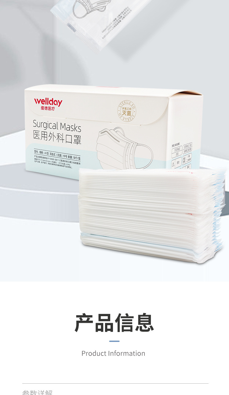ウィダー医療医療用外科マスクホワイトブルー独立50ケース使い捨てマスク三層不織布