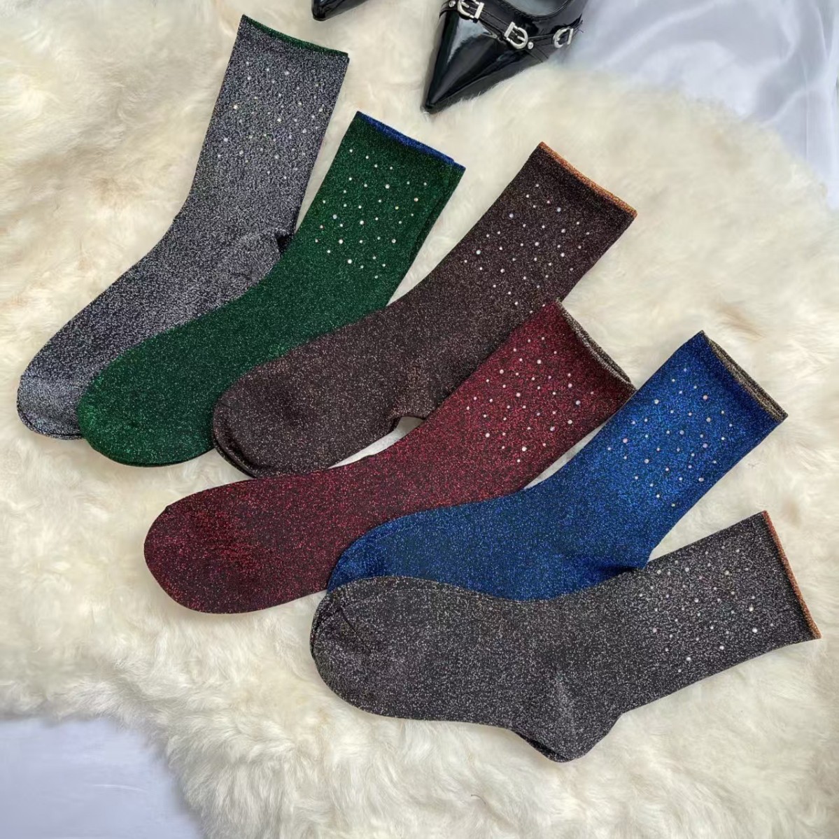 饰品袜女2025新款个性时尚金银丝烫钻钉珠外穿装饰袜子中筒百搭款