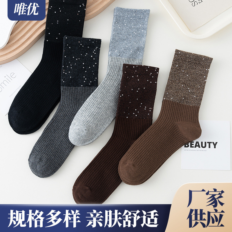 2025年新款仙女款重工满天星烫钻棉袜轻奢百搭中筒袜满钻袜子