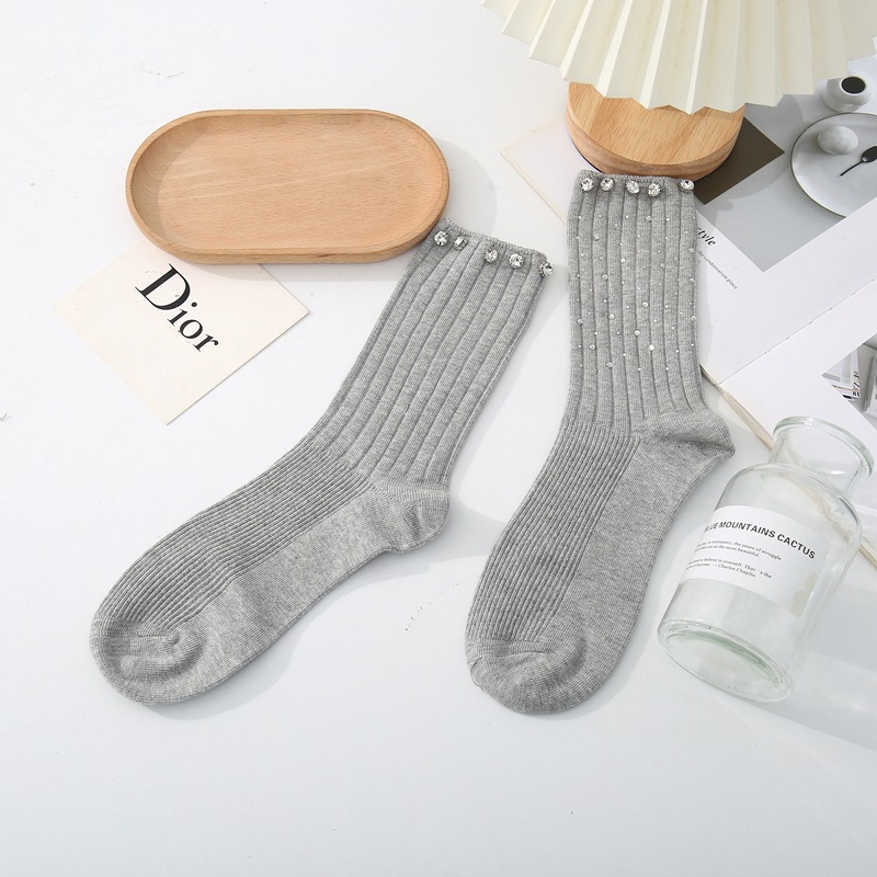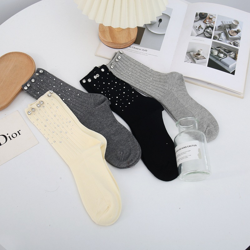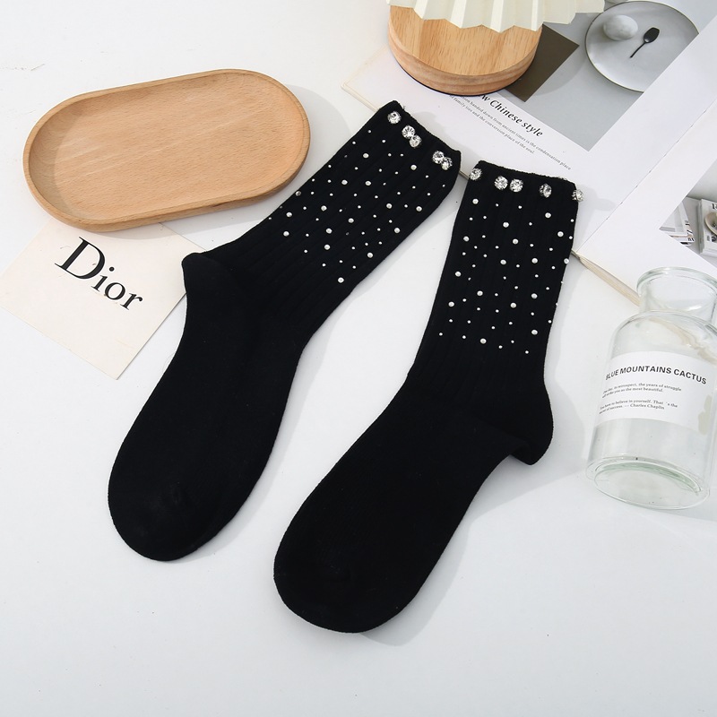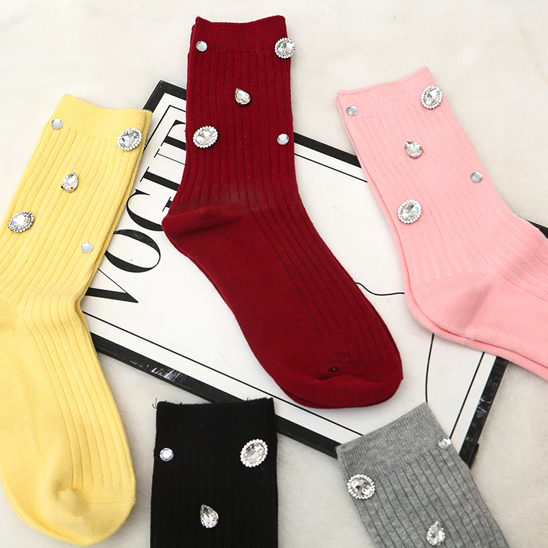 新しいニッチな軽い高級カラフルな大小のラインストーンホットダイヤモンド春と秋の綿の靴下女性の靴下快適で通気性のある吸汗性