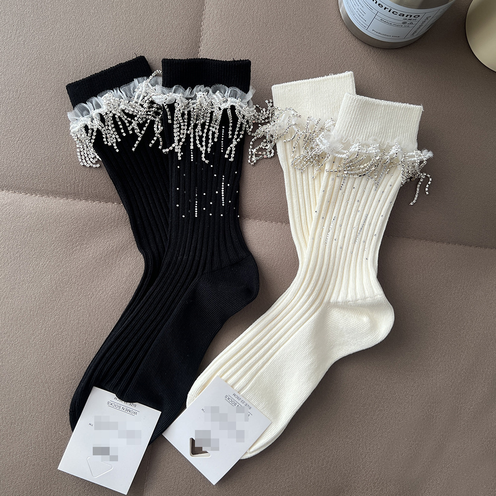 重工水钻链流苏饰品袜装饰欧货轻奢春秋款棉袜女袜子