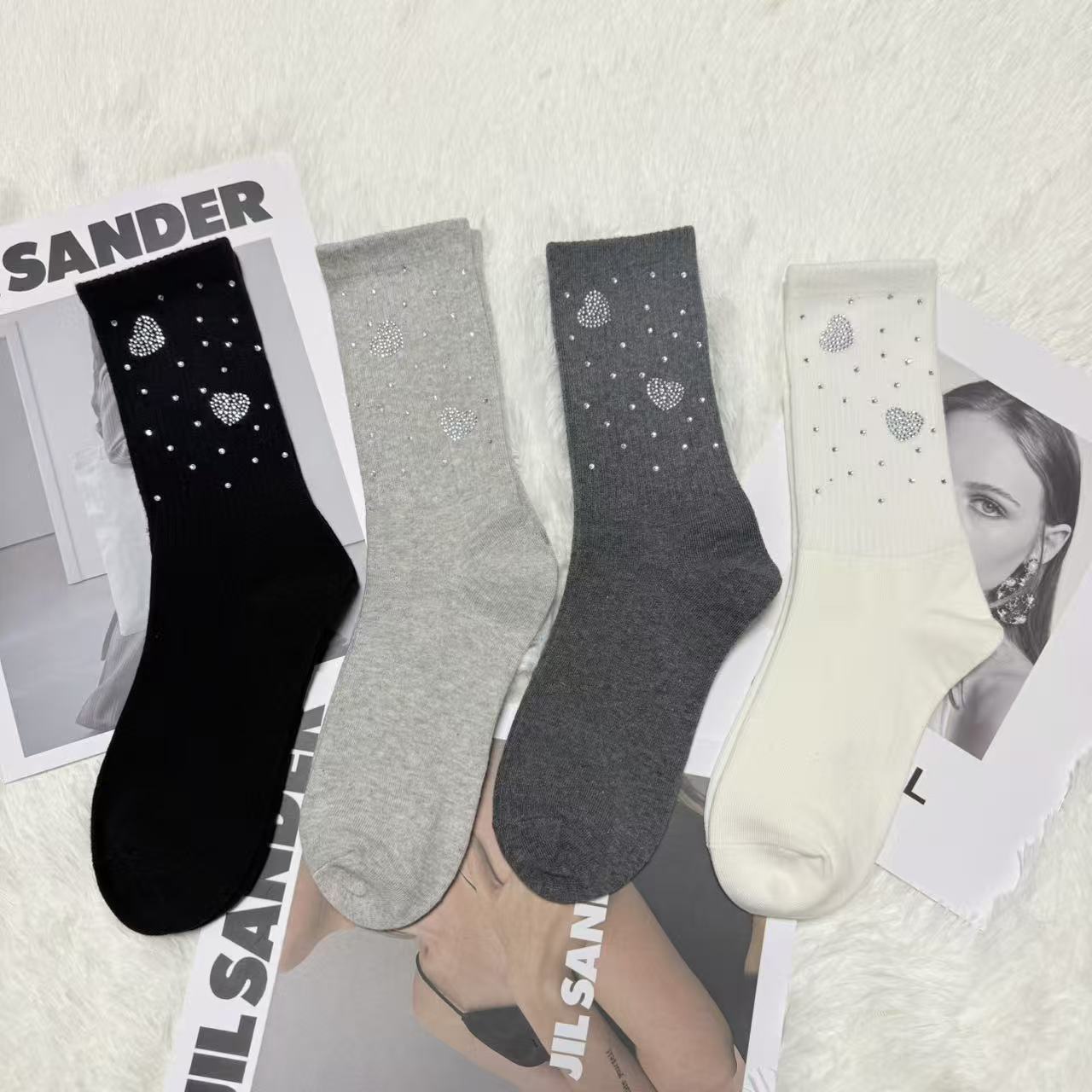 欧货饰品袜女2025新款重工烫钻满天星水钻爱心甜美时尚洋气中筒袜
