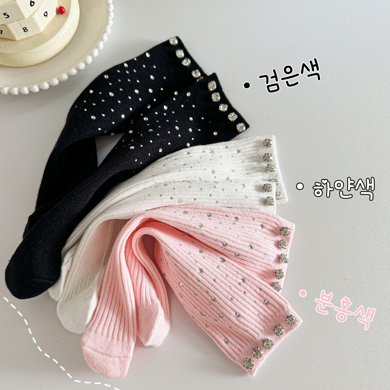 2025韓国版ファッションカラードリル満天星中筒靴下アニメ日系かわいいキラキラ宝石デザイン感